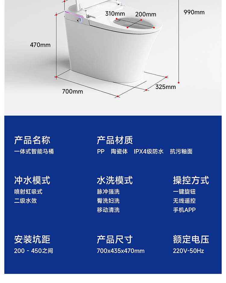 ETL北美出口认证现代高端自动卫浴洁具落地式智能电动遥控马桶