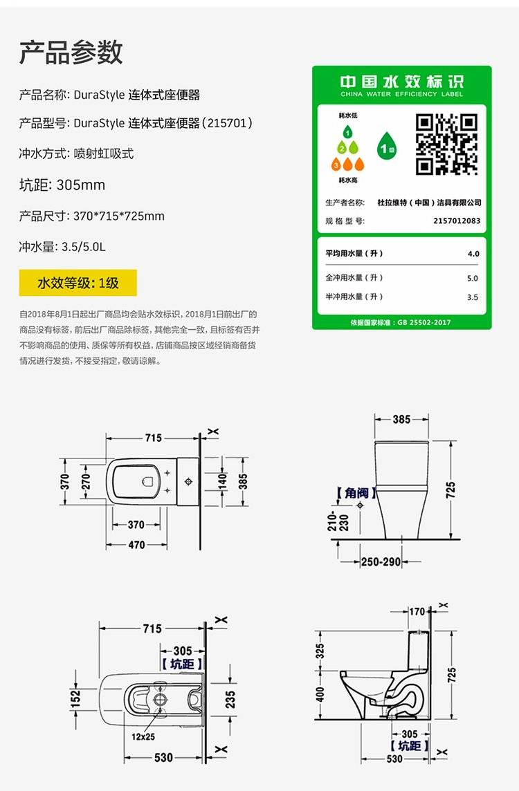德国Duravit杜拉维特马桶215701自洁连体座便器落地式虹吸式抗菌