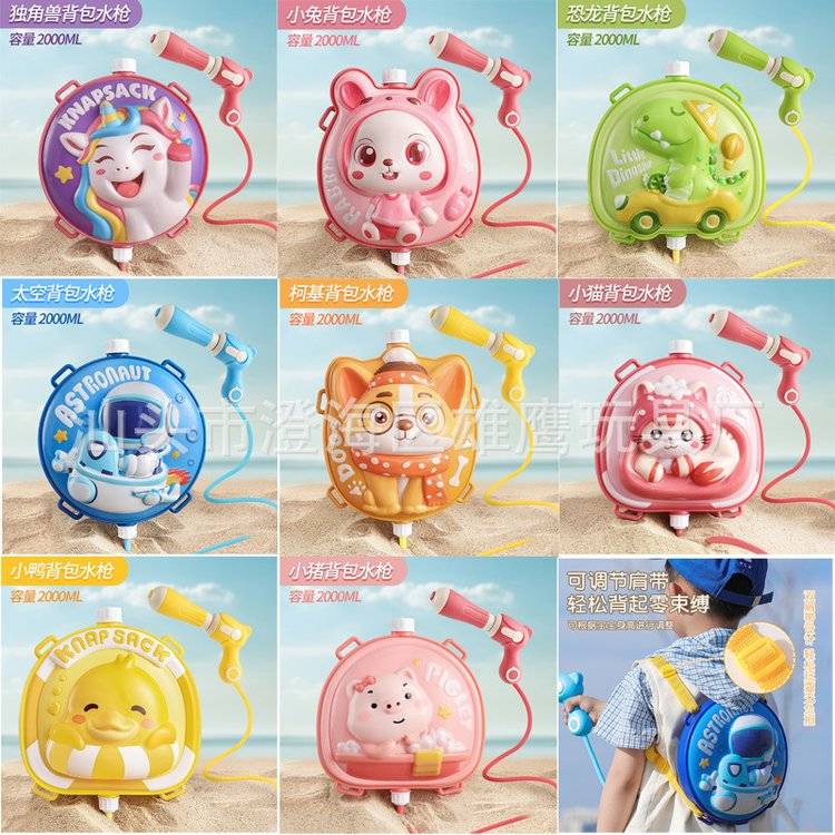 新款大容量抽拉式背包水枪玩具 夏天沙滩户外戏水儿童呲水枪