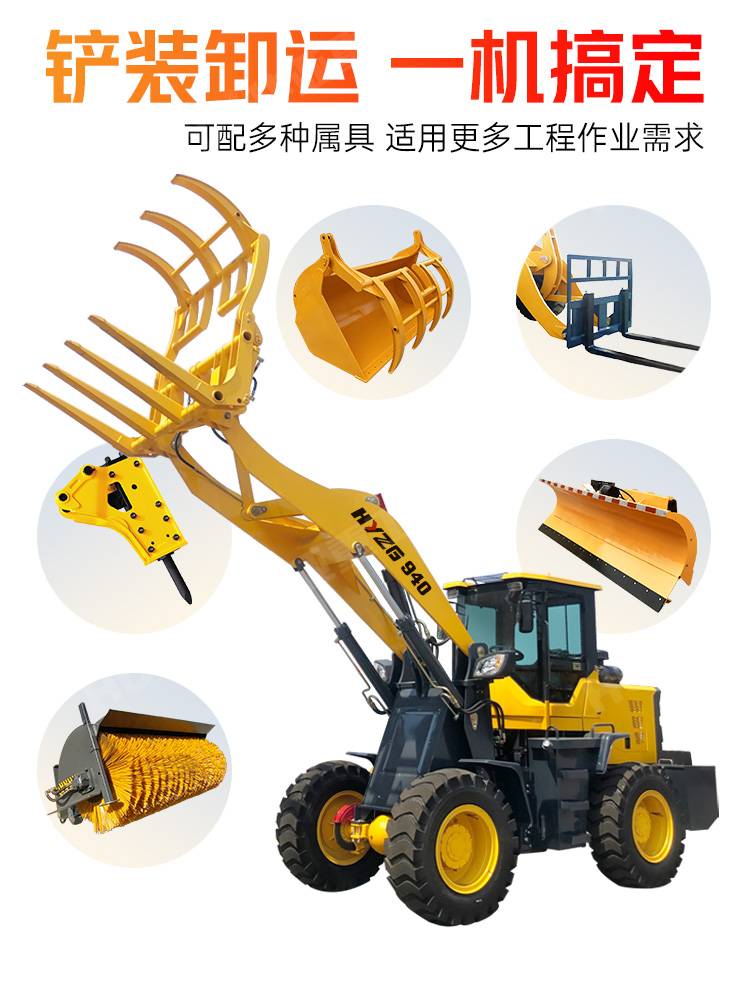 两头忙推土机四驱多功能小型轮式铲车抓木机轮胎式前铲后挖装载机
