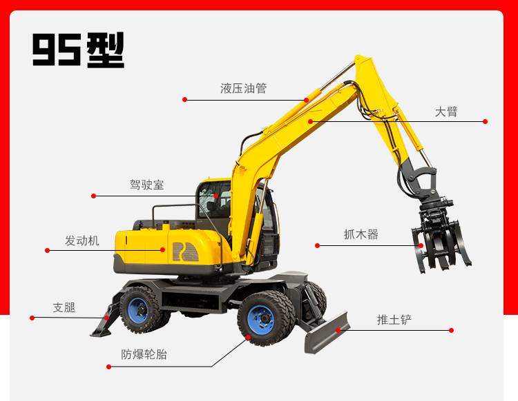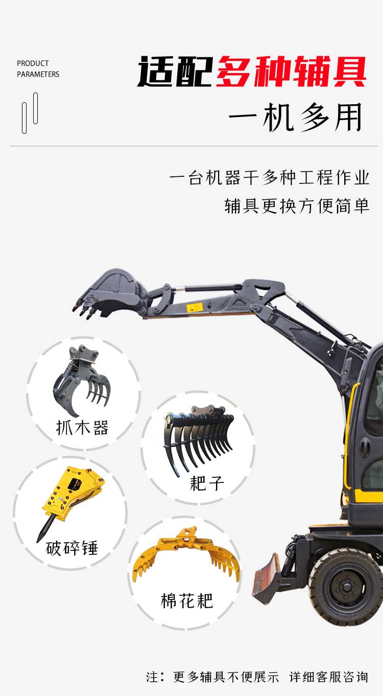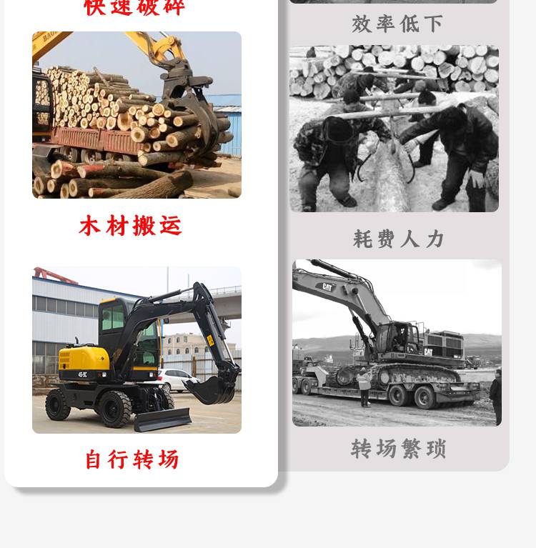 山地轮式挖掘机 农业果园挖掘抓木搬运机 多功能推土机