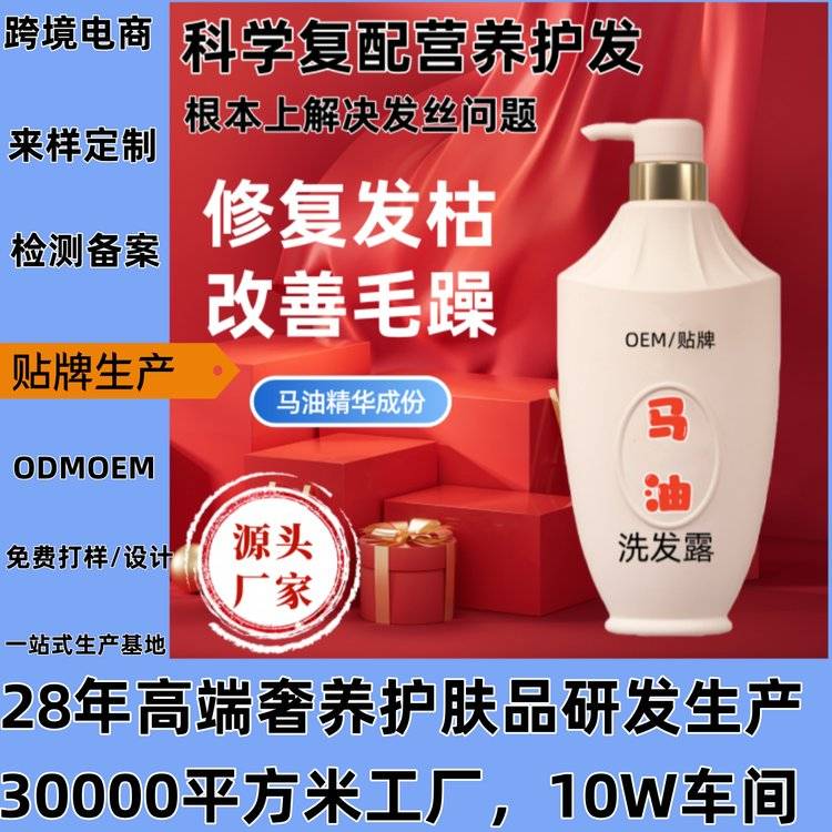 大型化妆品厂家跨境电商贴牌生产OEM马油洗发水修护柔顺滋养毛囊