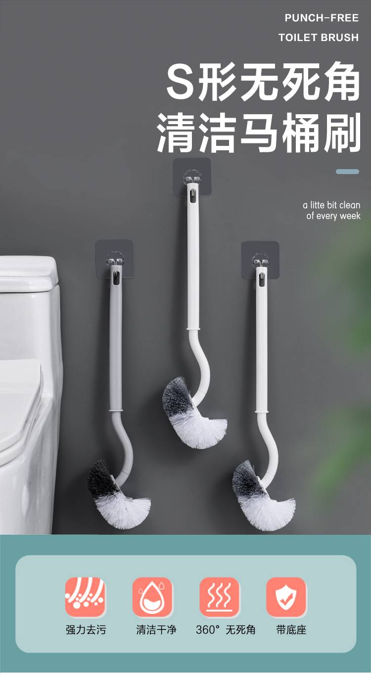 家用卫生间坐便软毛刷子壁挂式马桶刷清洁挂墙式洗厕所无死角神器