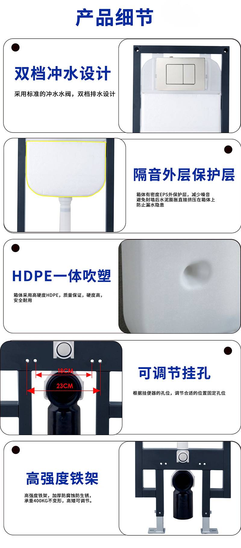 挂厕暗藏水箱 酒店公寓卫浴暗埋大冲力入墙式马桶水箱厂家