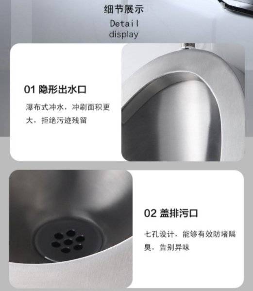 采用智能选择单双段冲水方式,感应器可根据小便斗的使用频率高低进行智能化冲水控制,更有效的避免水资源的浪费