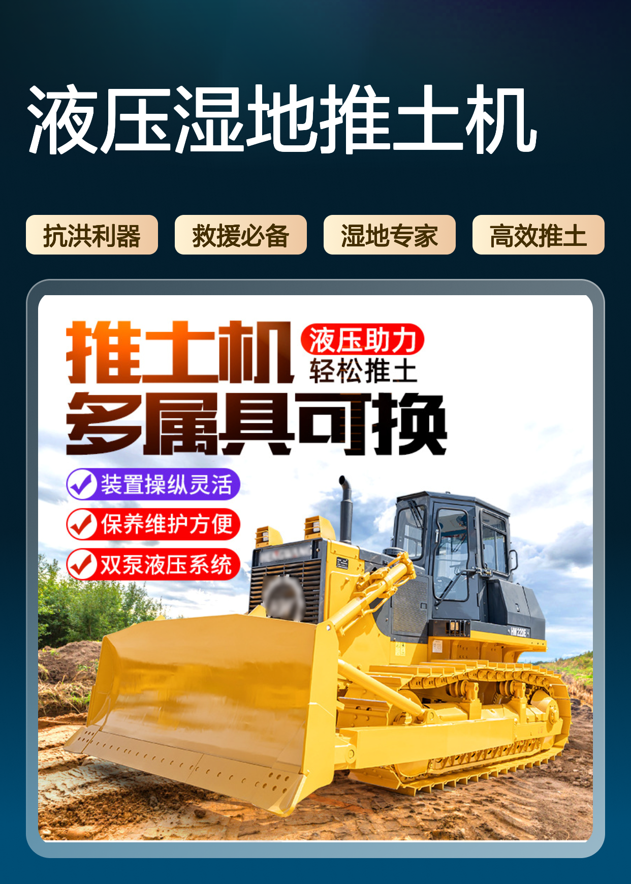 抗洪抢险大型装载机履带式液压湿地推土机193*155*158cm挖土机