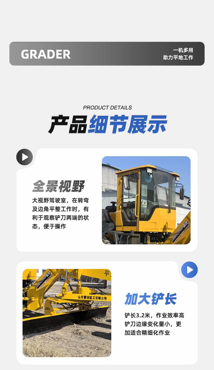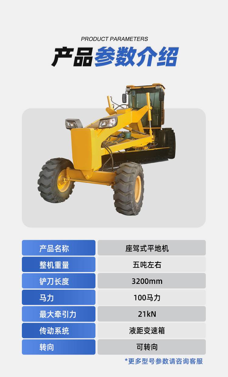 雷创 小型座驾式推土机 工程路面整平机 铲刀3.2米快速平地机