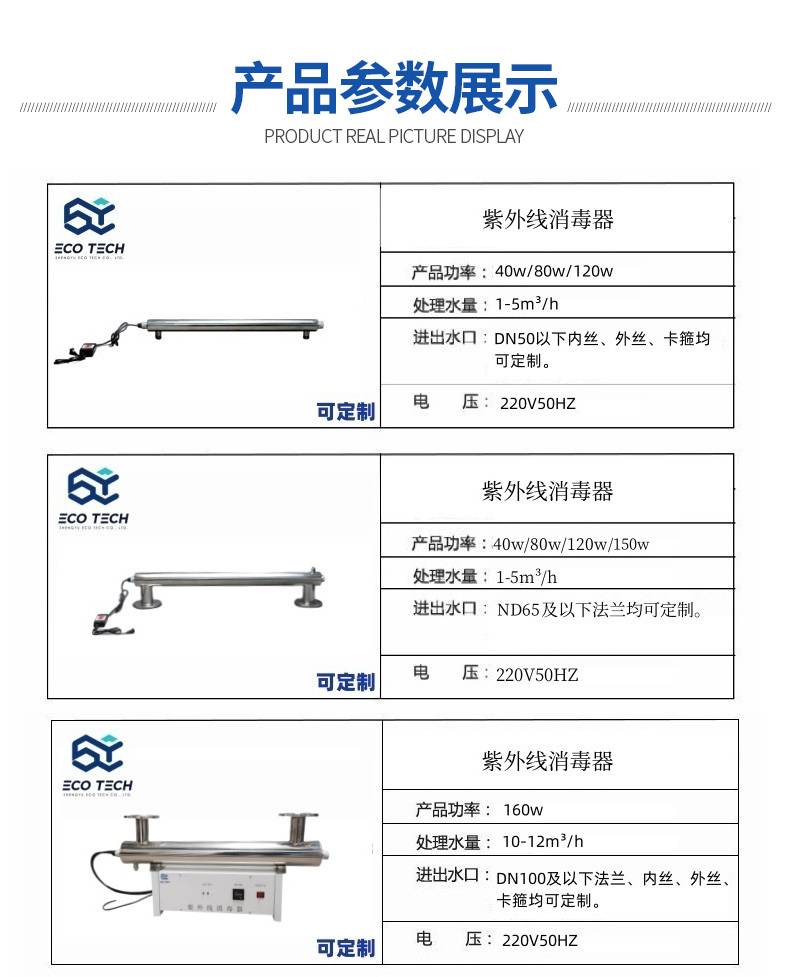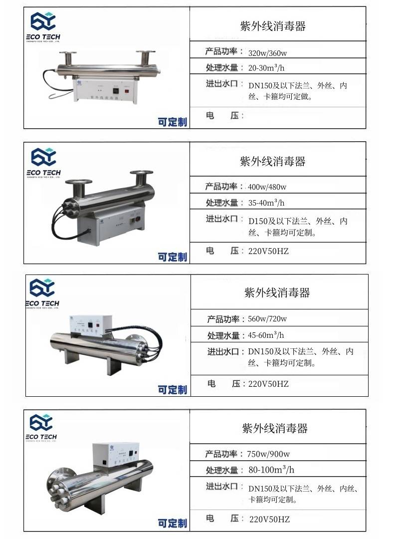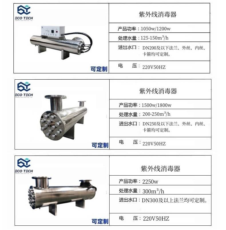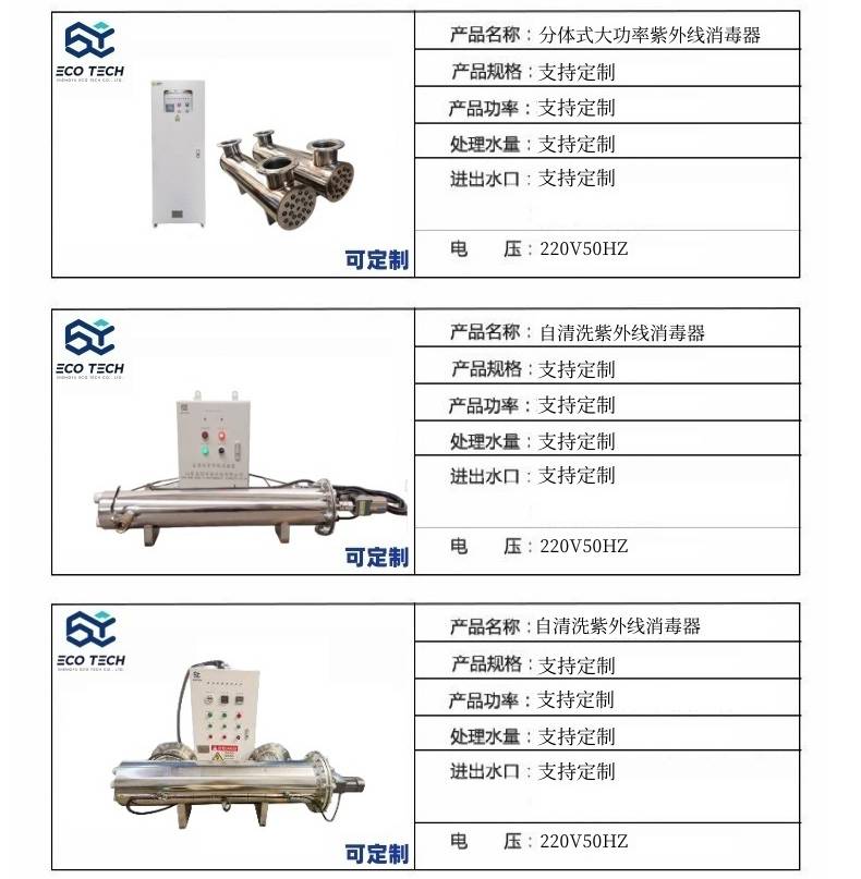 紫外线消毒器 口径DN100 4支灯管 带流量开关 润煜供应