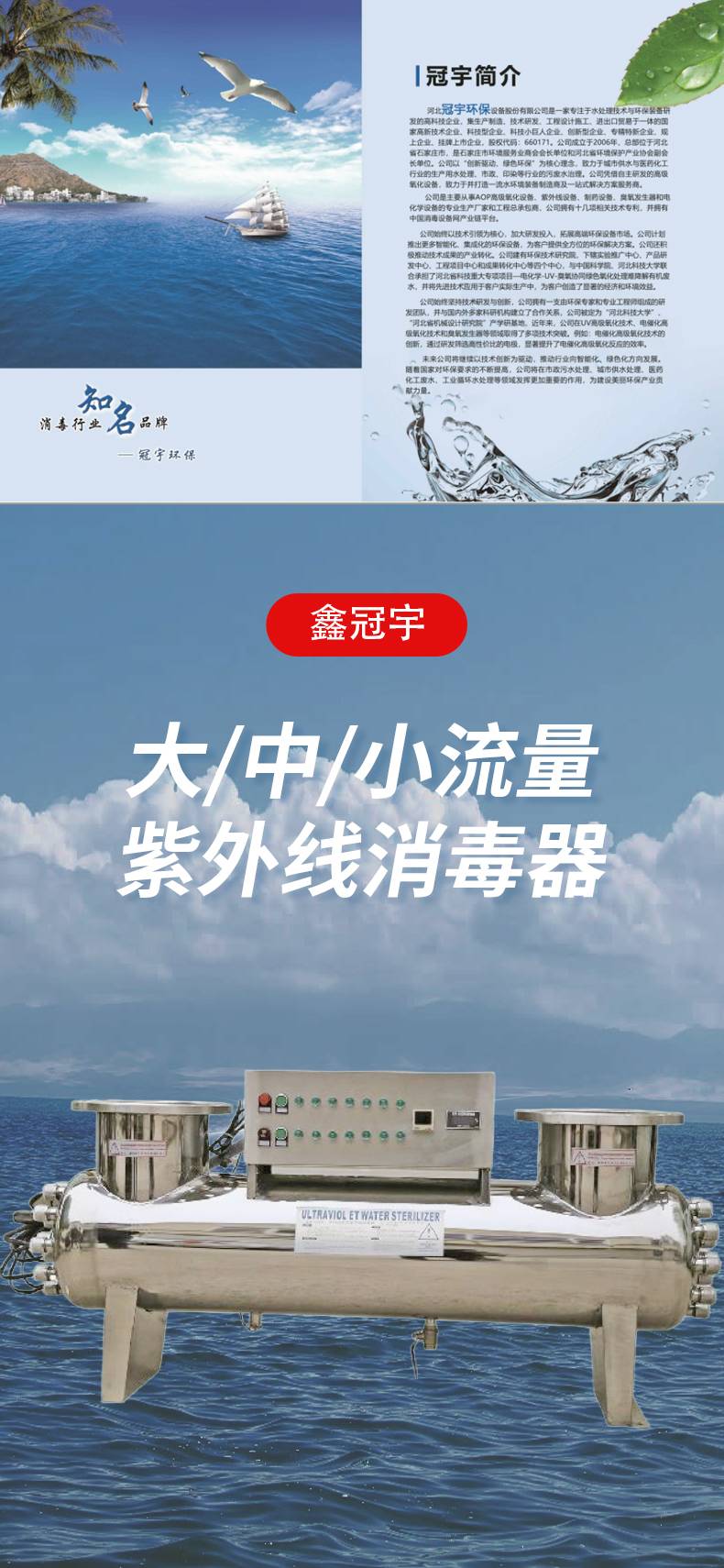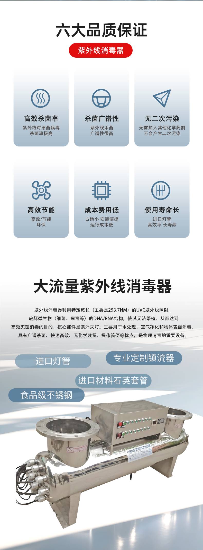 紫外线消毒器供应 市政供水 进口灯管灭藻性强