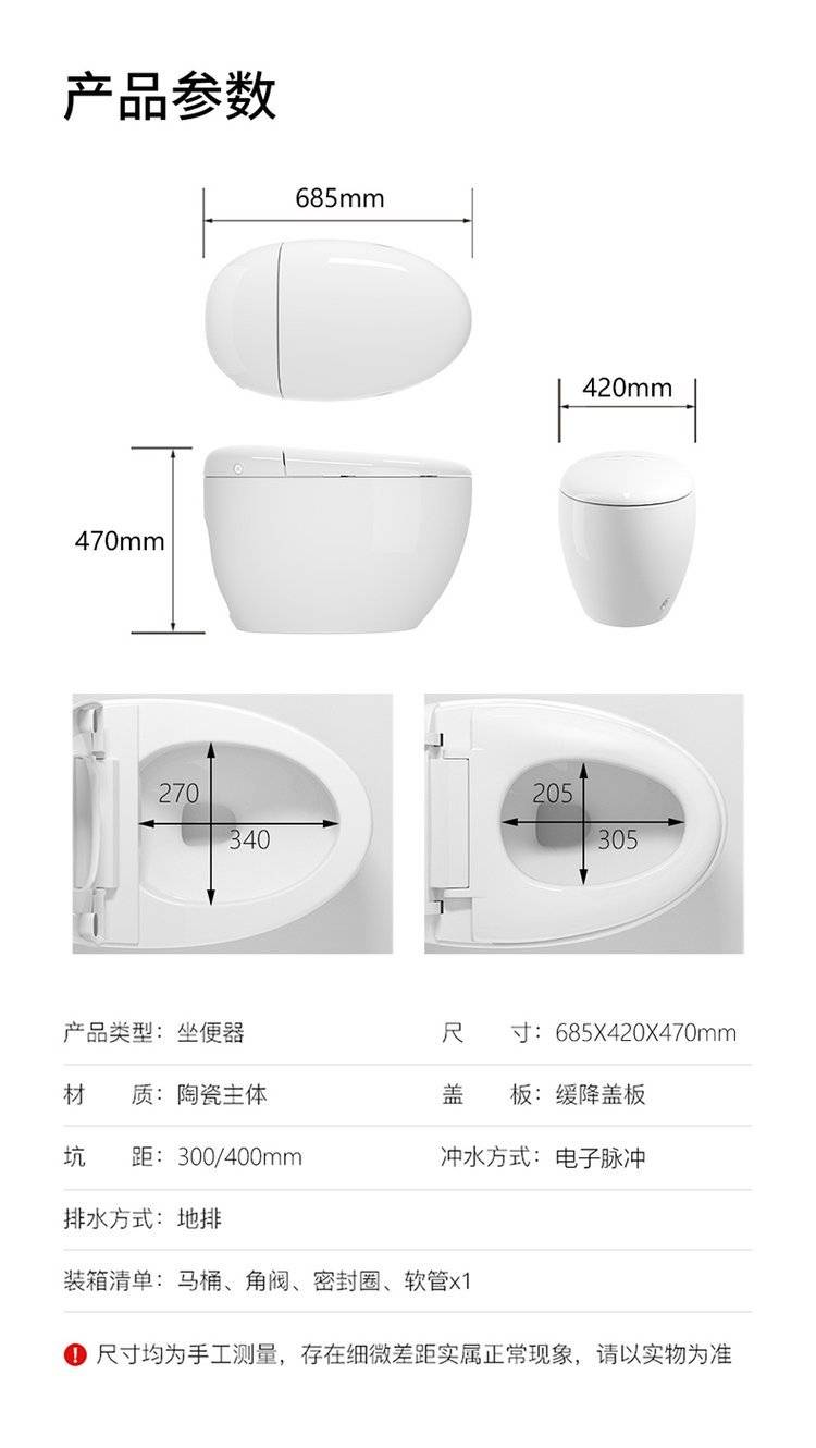 劳智ROZO蛋型抽水马桶无水箱小户型普通非智能家用虹吸式坐便器
