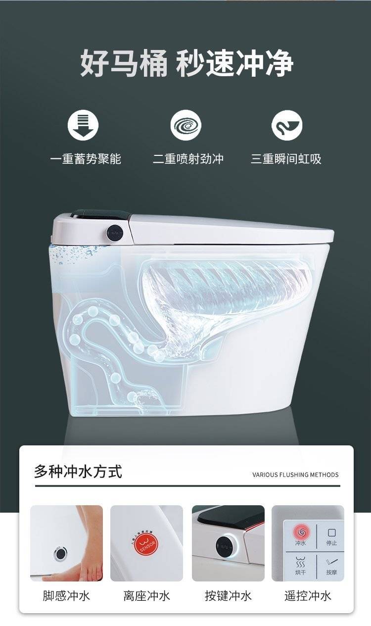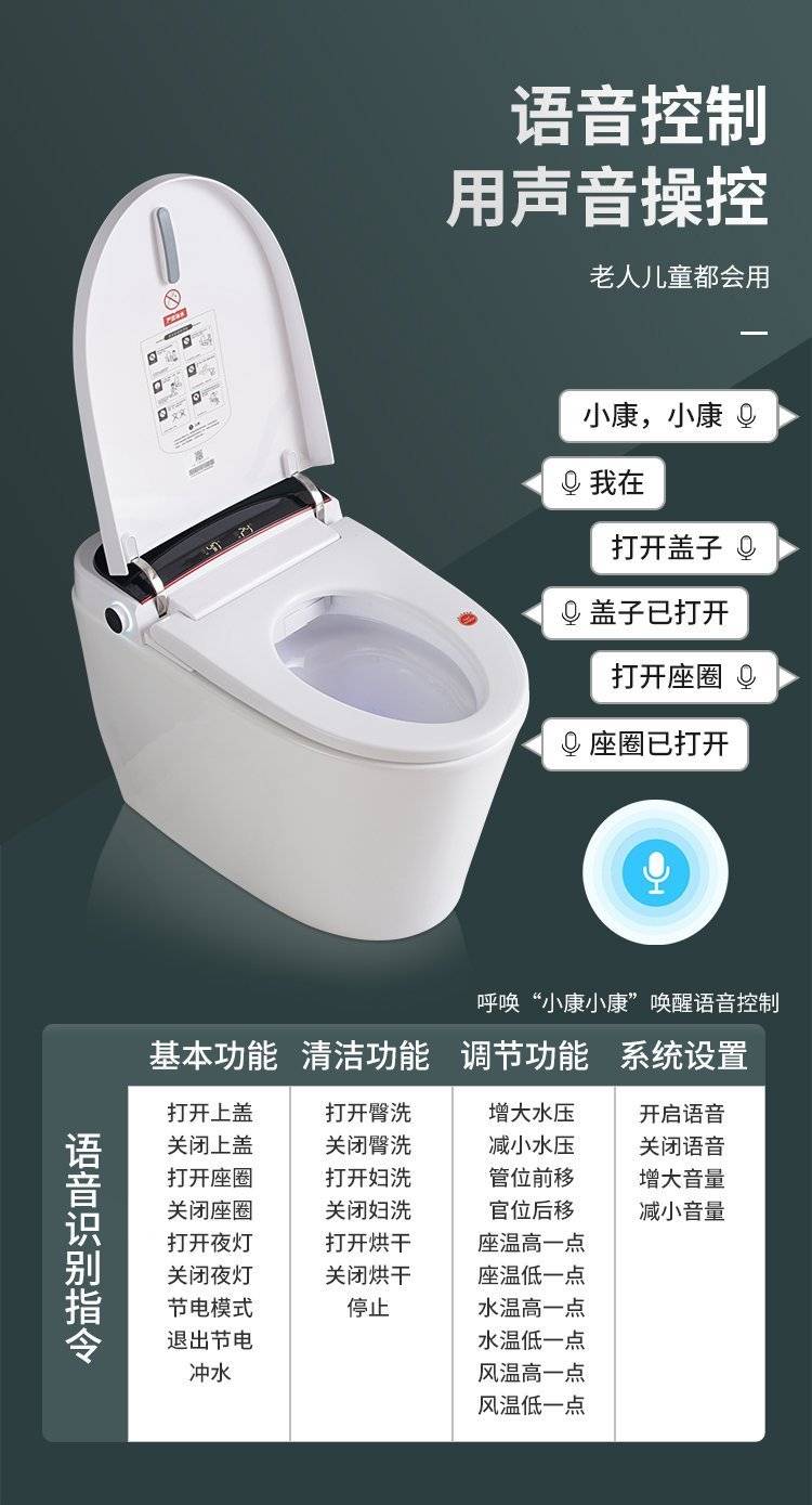 全自动翻盖智能马桶即热一体式语音泡沫盾冲水电动坐便器