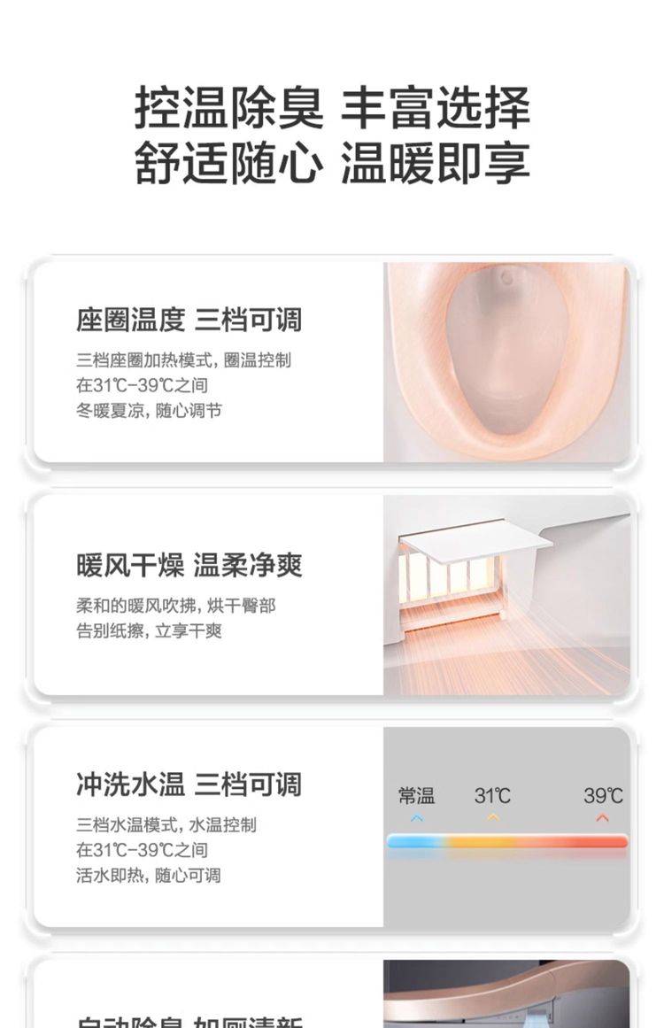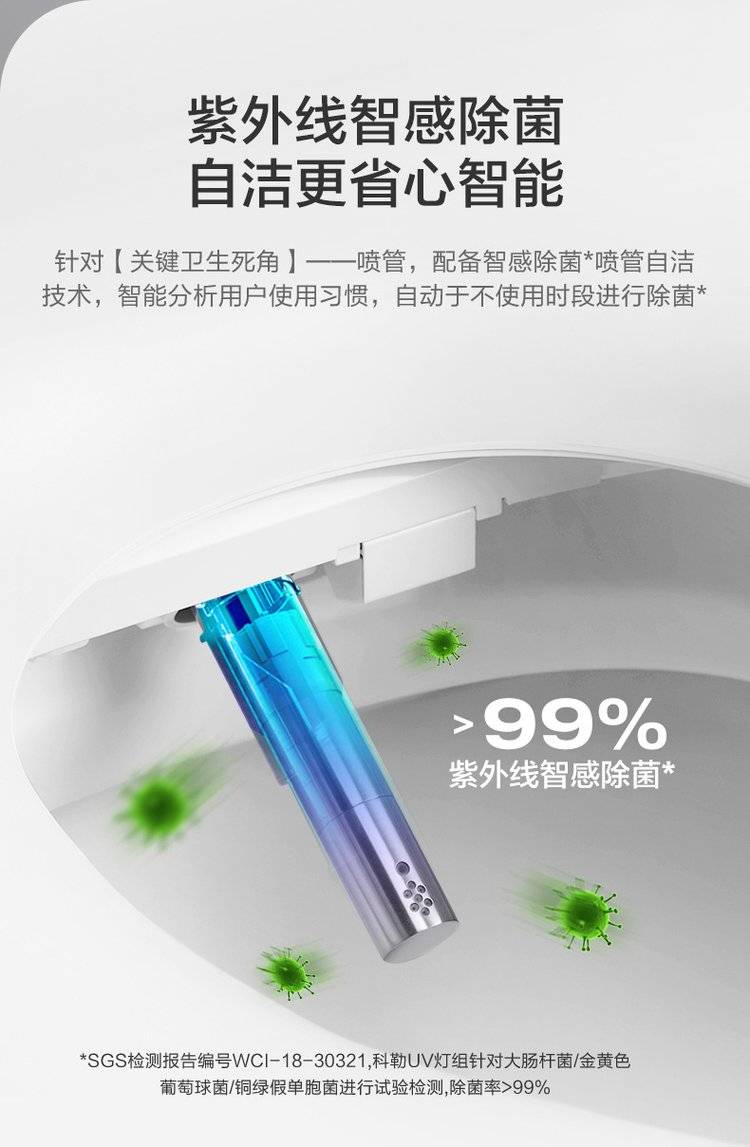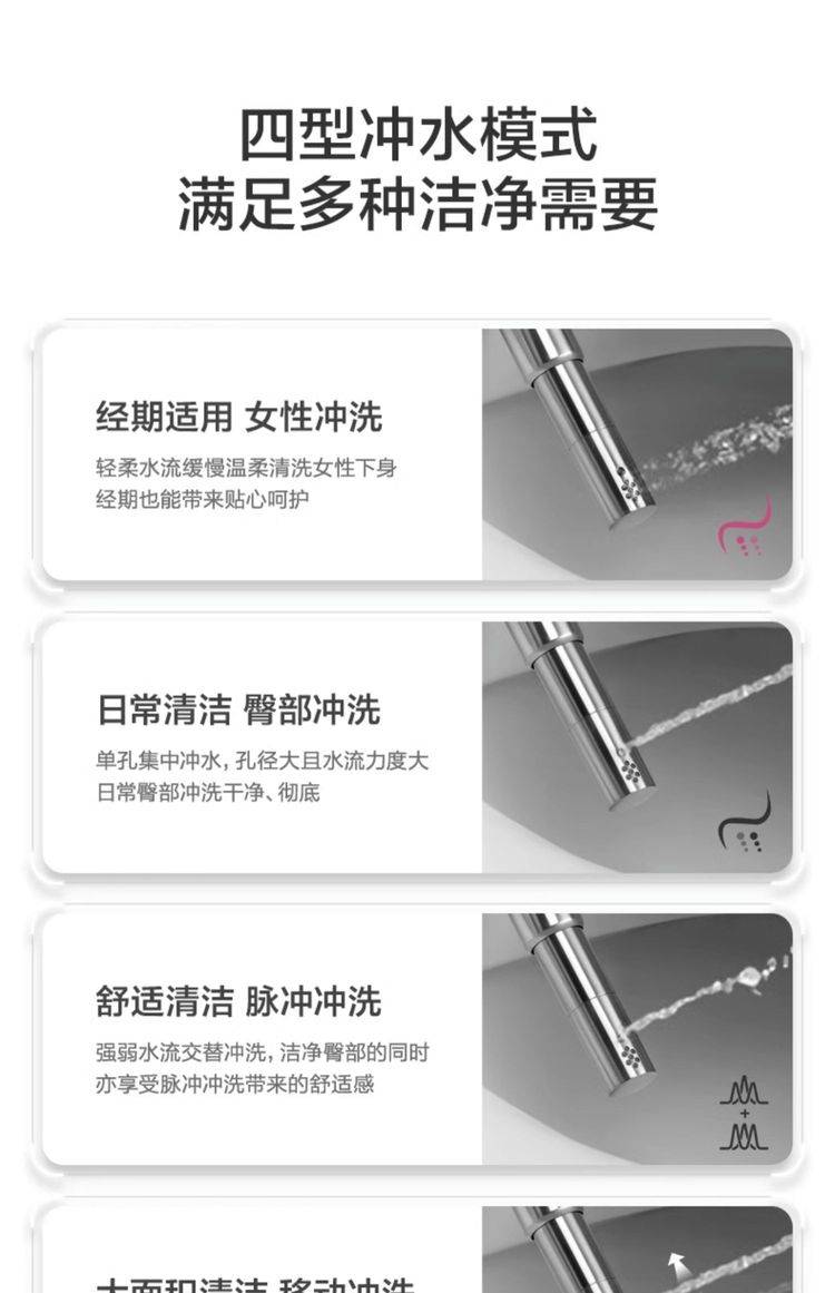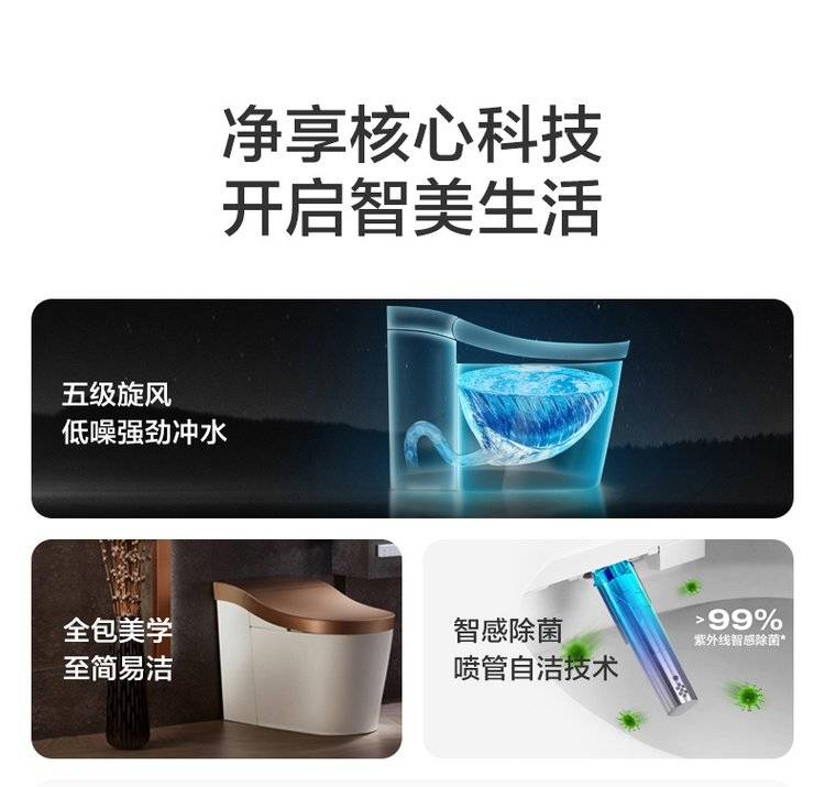 五级旋风低噪强劲冲水, 智感除菌, 喷管自洁技术, 便前喷雾