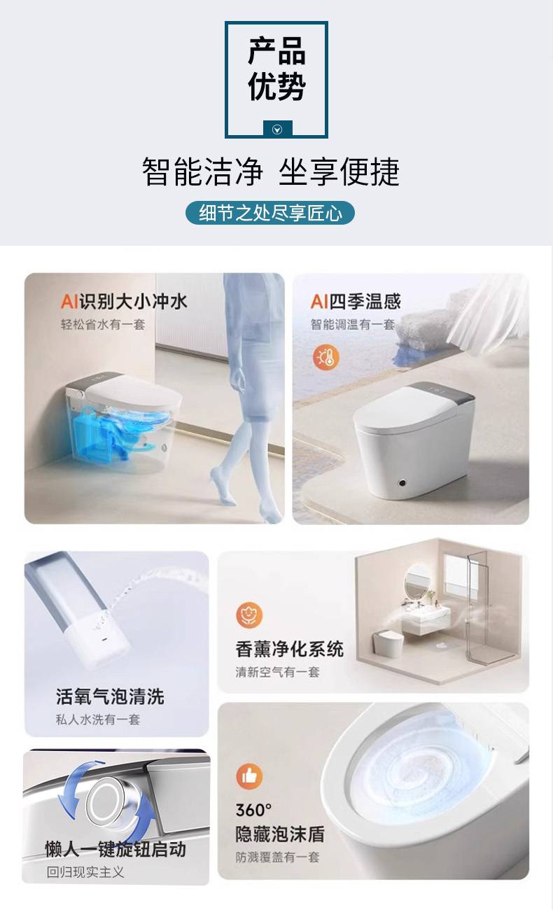 全自动一体式马桶 隐藏泡沫盾 座圈加热 智能感温调节 凯路莎 尚典生产