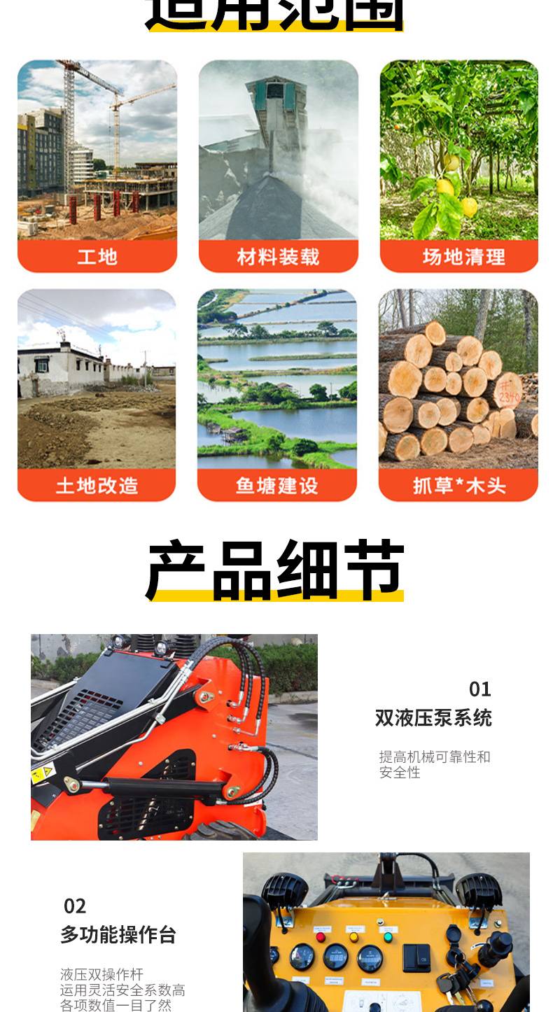 小型滑移装载机轮式履带式建筑工地推土机多功能养殖清理小铲车