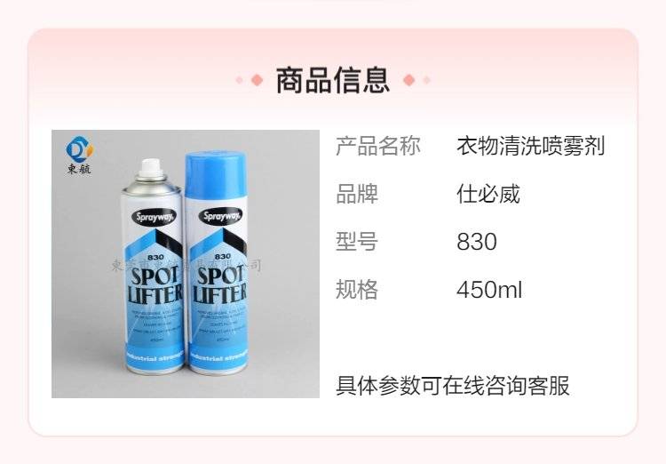 Sprayway仕必威830衣物去油渍免水洗清洗喷雾剂干洗去油污衣服