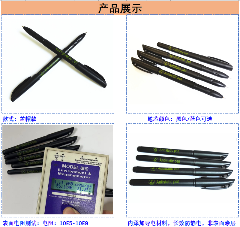 商务黑色蓝色0.5mm水性笔碳素笔无尘车间专用防静电中性笔