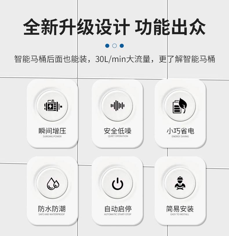 无水箱智能马桶增压泵大流量全自动家用坐便器加压泵卫生间冲水器