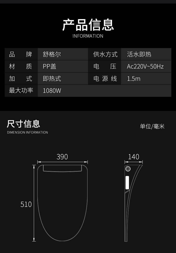 舒格尔智能马桶盖399全自动无水箱即热除菌家用坐便器盖洁身器