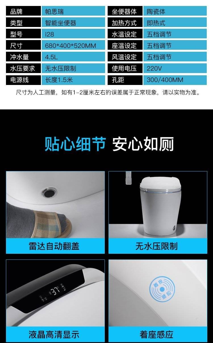 全自动翻盖智能马桶无水压限制家用一体式带水箱小米座坐便器