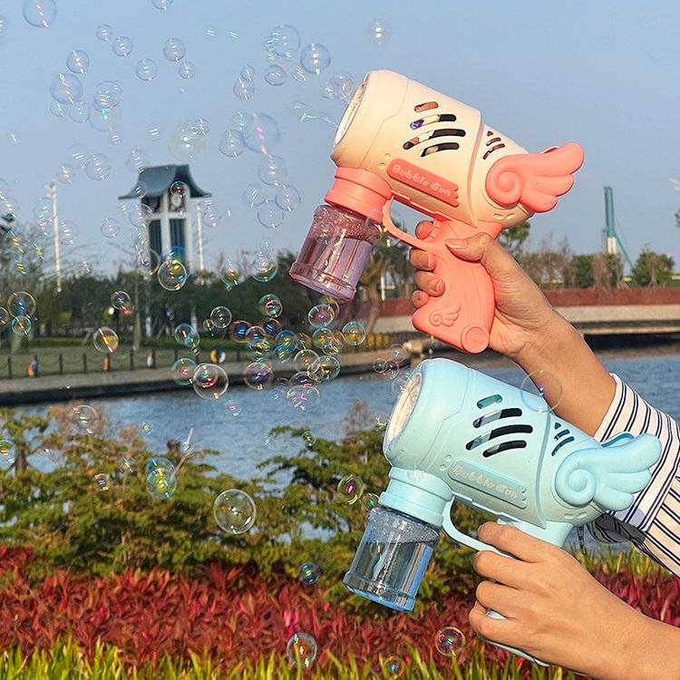 10孔泡泡机玩具带翅膀灯光天使泡泡枪 电动出泡儿童
