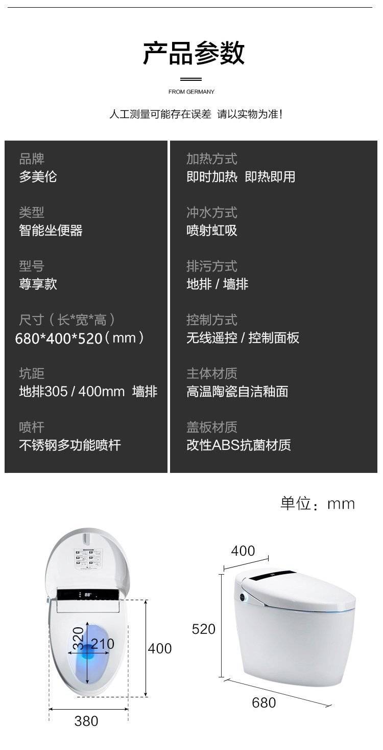 智能马桶全自动家用一体式无水箱电动座坐便器可后排清洗烘干