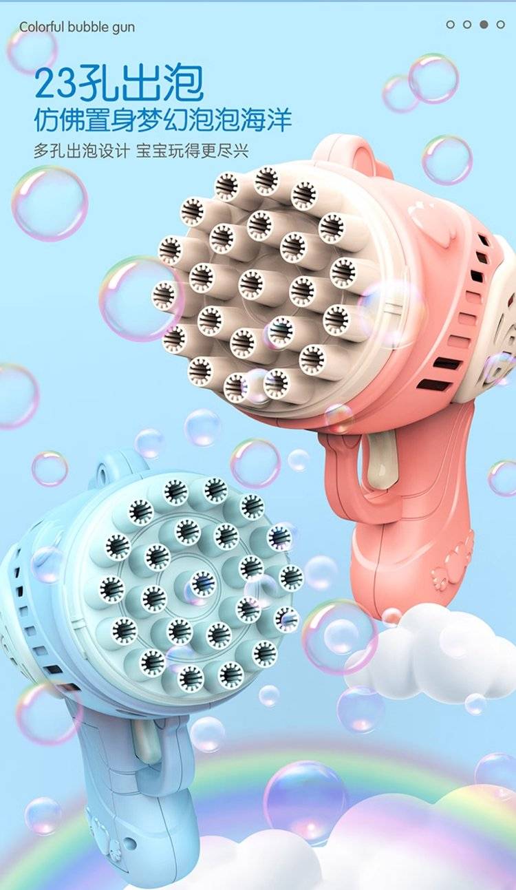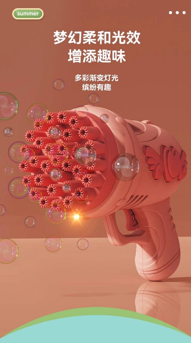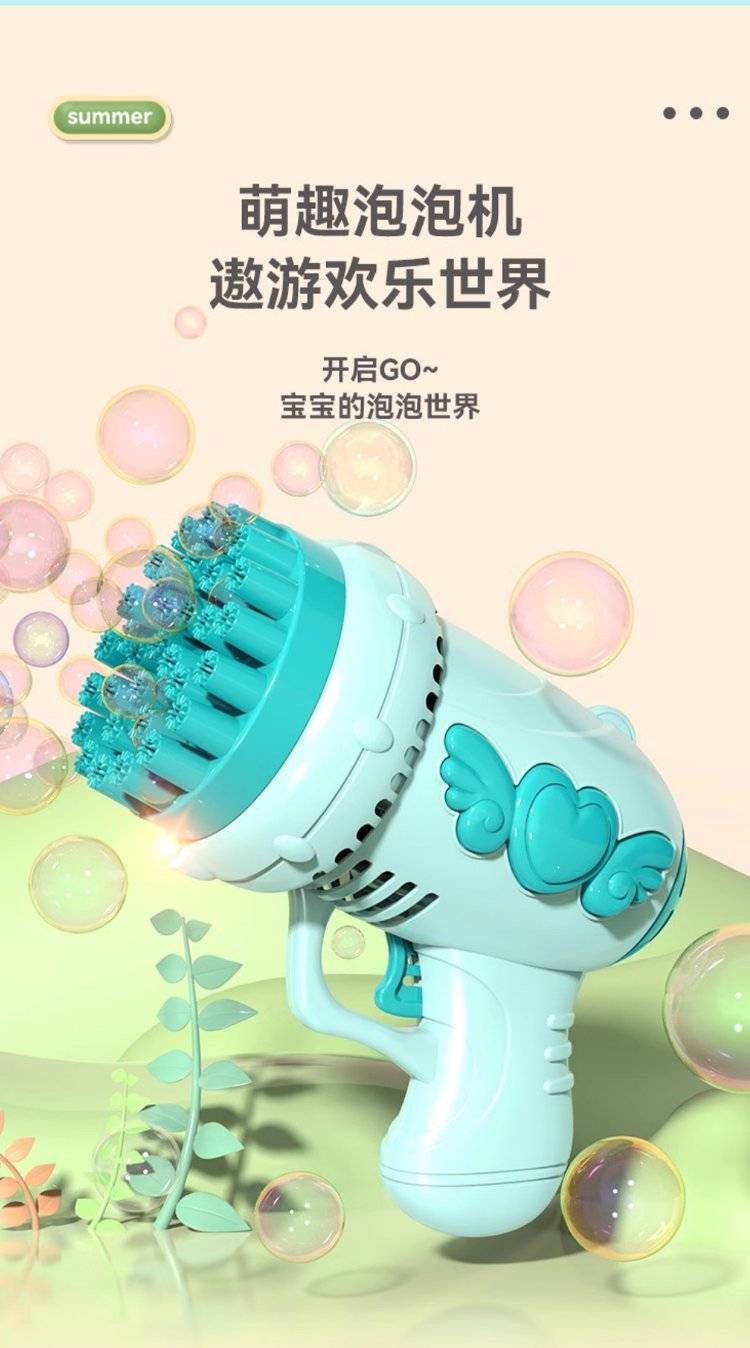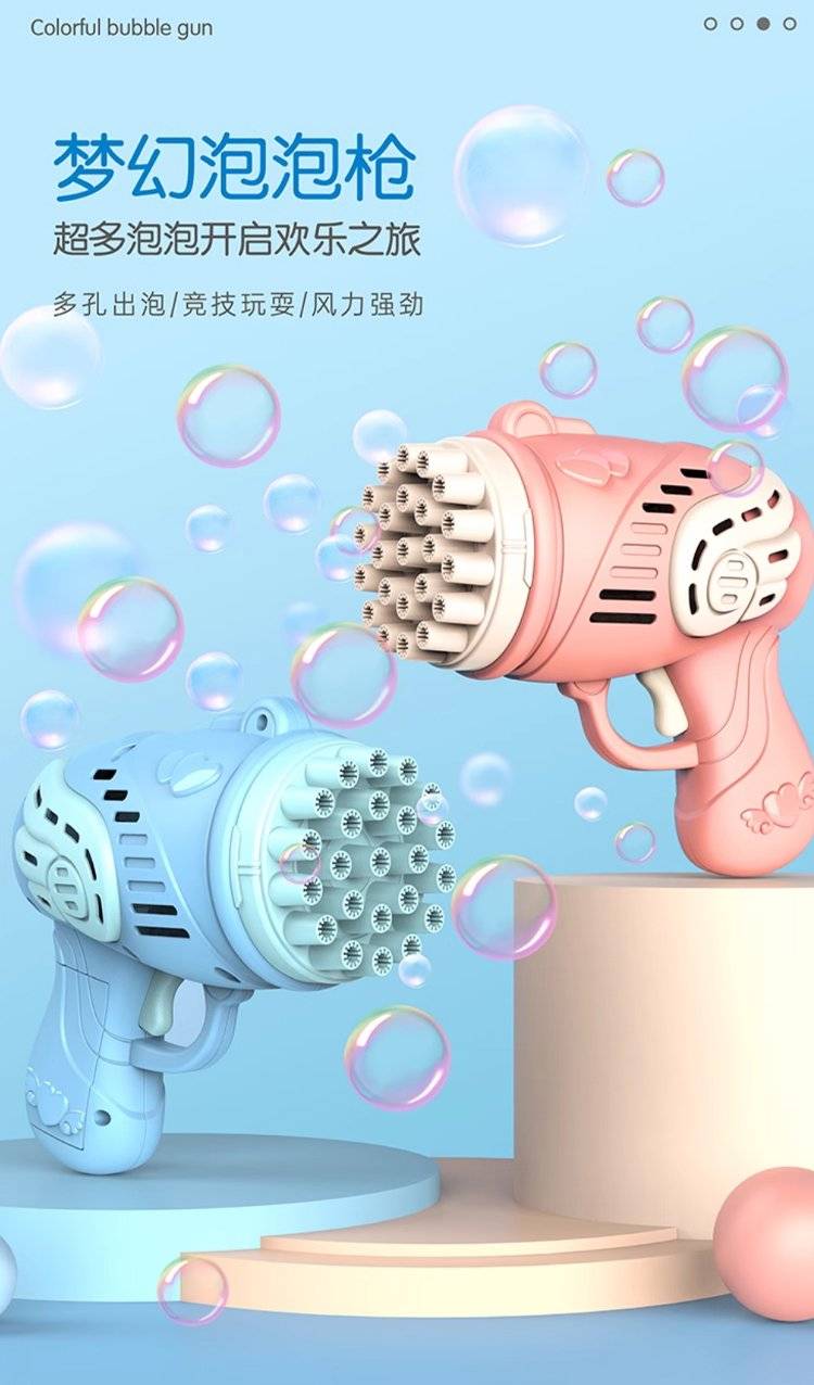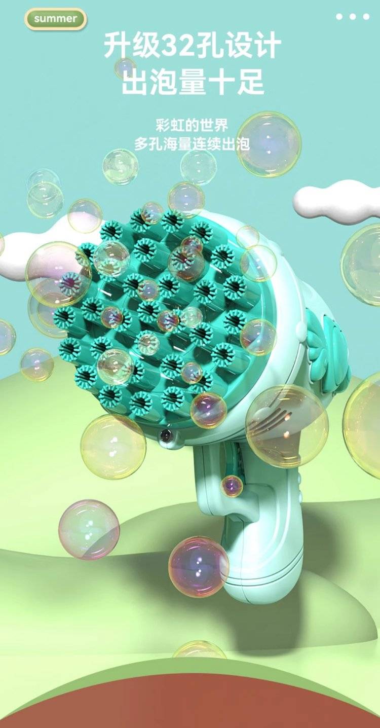 儿童电动多孔泡泡枪 32孔设计出泡量足 手持枪造型萌趣可爱