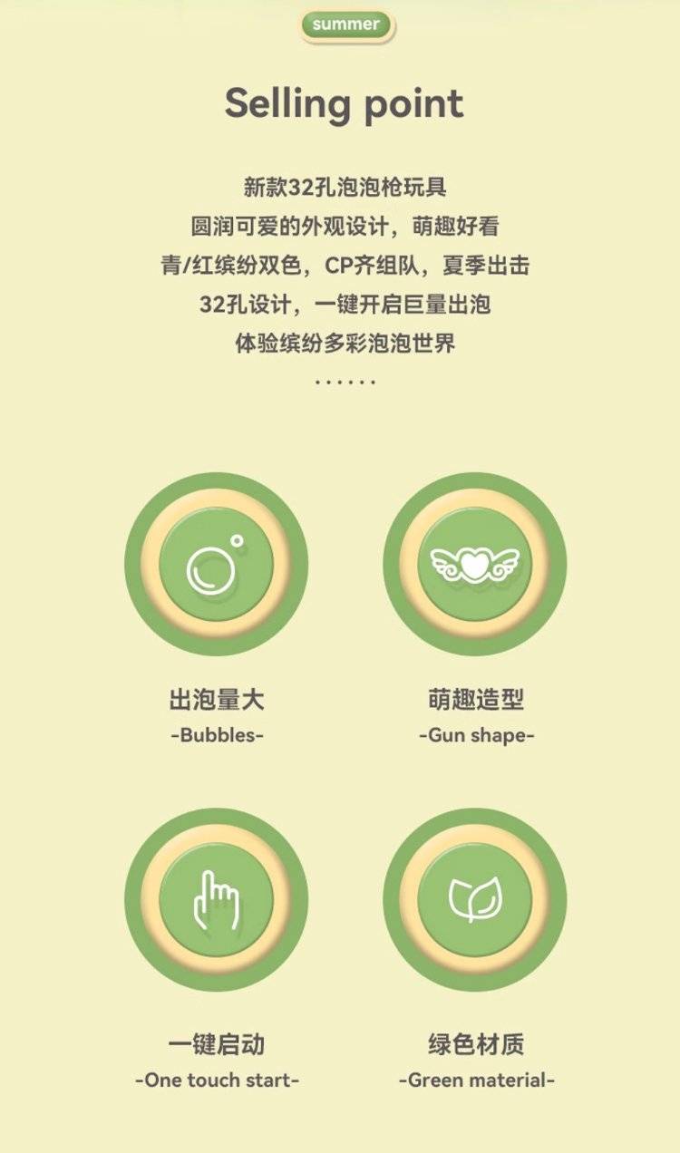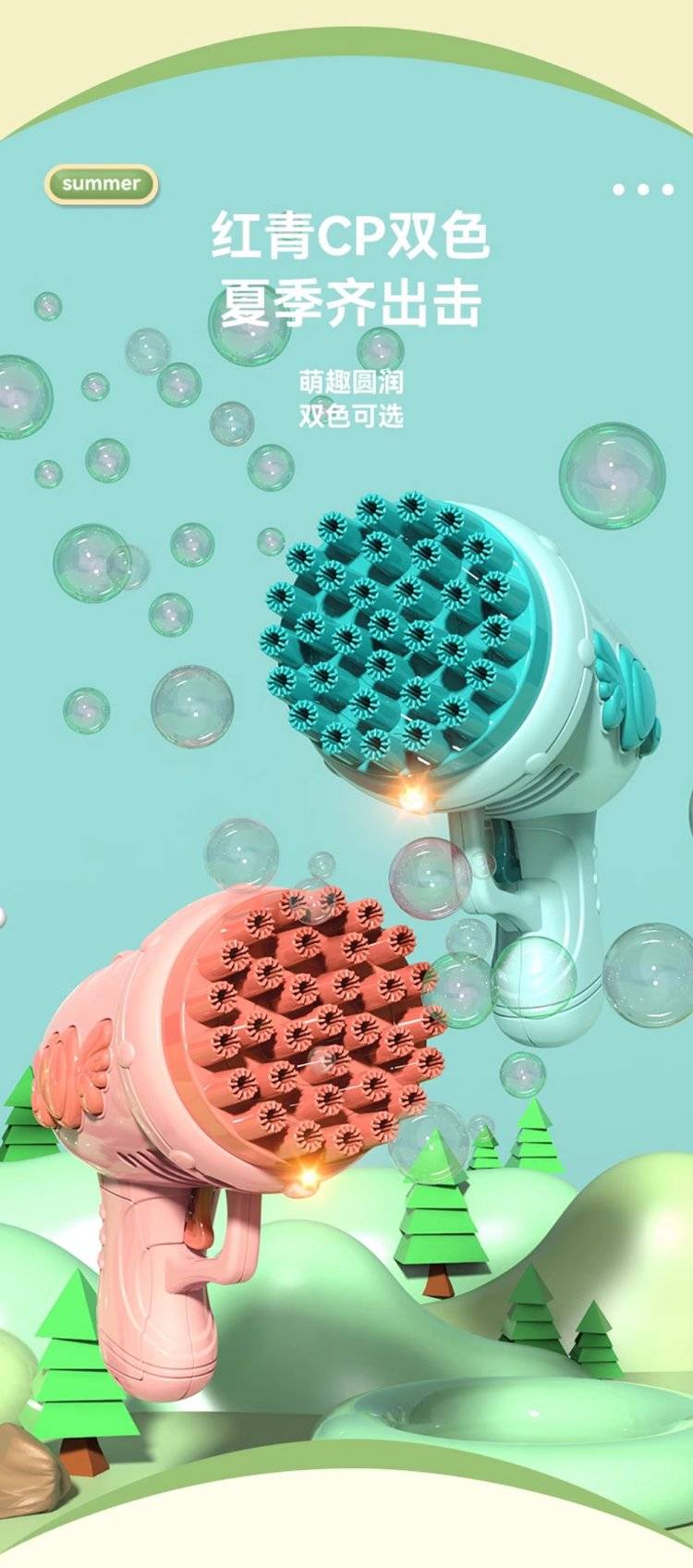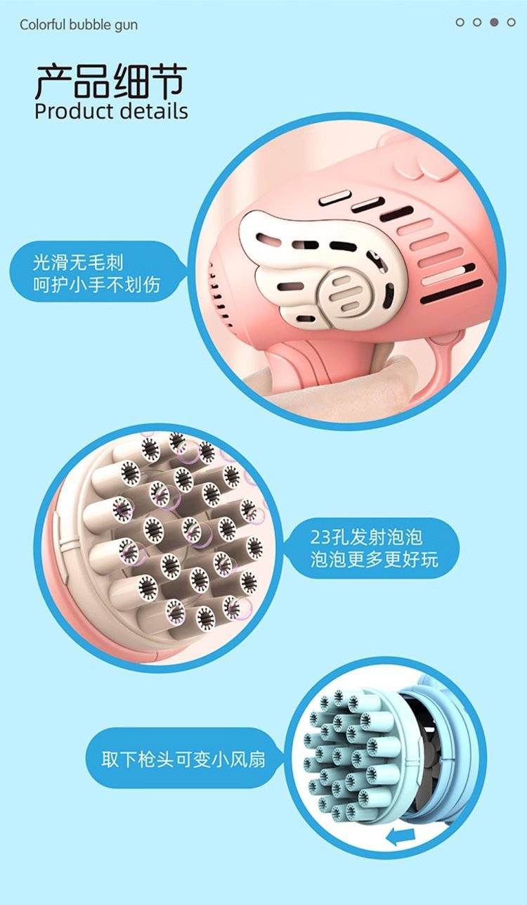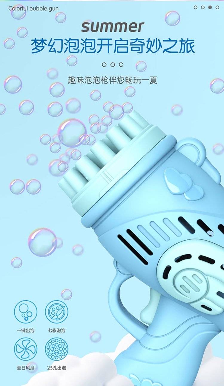 儿童电动多孔泡泡枪 32孔设计出泡量足 手持枪造型萌趣可爱