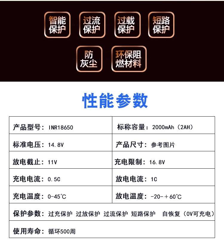 3.7V大容量18650锂电池组伏泡泡枪增氧泵筋膜枪扫地机动力充电池
