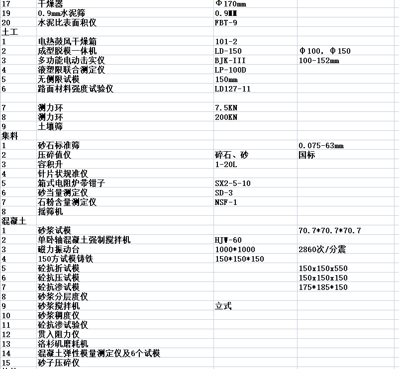 高速公路工程项目工地试验室仪器 公路试验仪器 设备全套清单