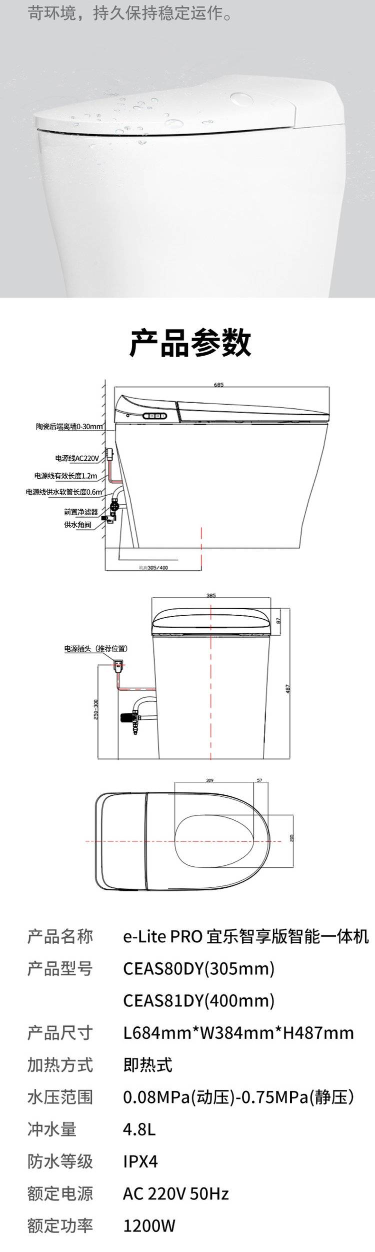 美标卫浴宜乐PRO电动马桶一体式全自动智能即热款电子坐便器80DY