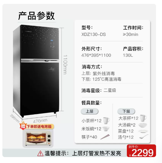 康宝消毒柜商用XDZ300-DS 大容量饭店家用厨房碗柜