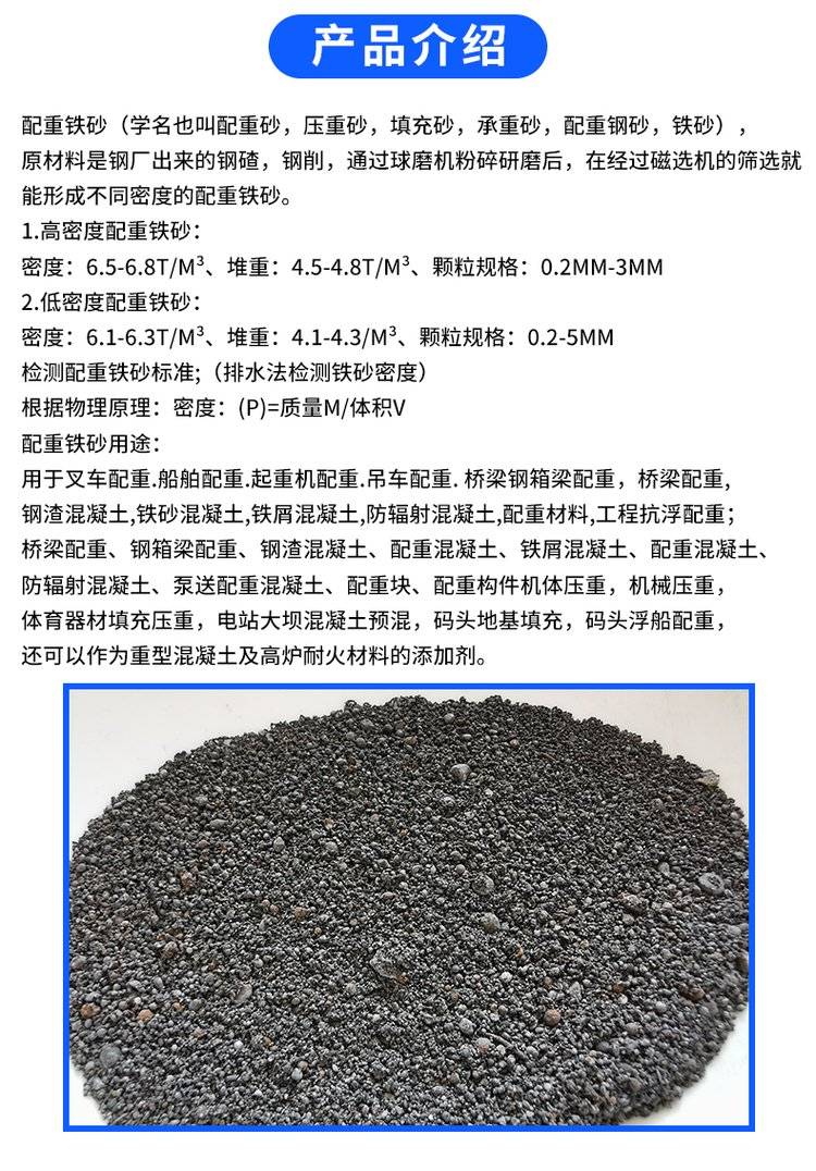 高密度铁砂 体育器材配重 水处理磁粉 还原铁粉 抛光除锈万竹矿业