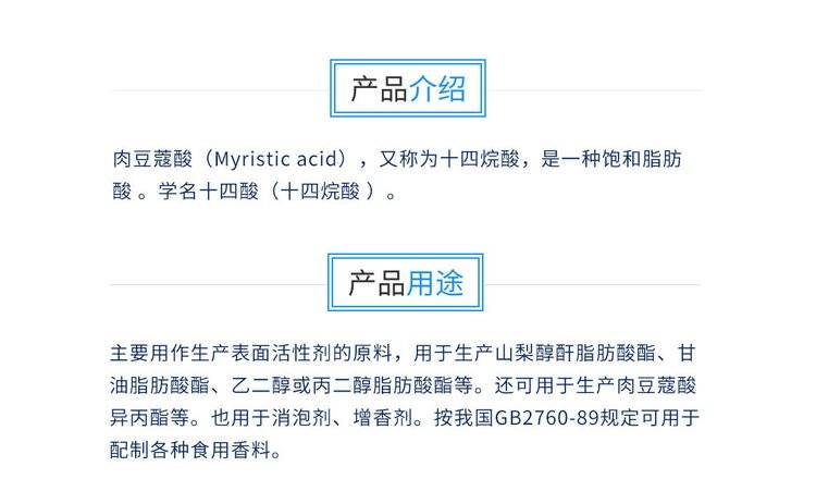 14酸 马来椰树肉豆蔻酸 十四酸 1499 沐浴露脂肪酸十四烷酸
