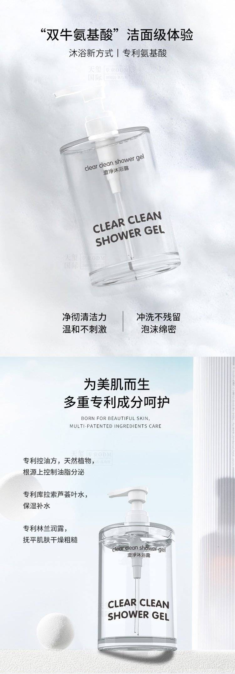 澄净香氛沐浴露洗护代加工清洁控油滋润氨基酸 OEM定制