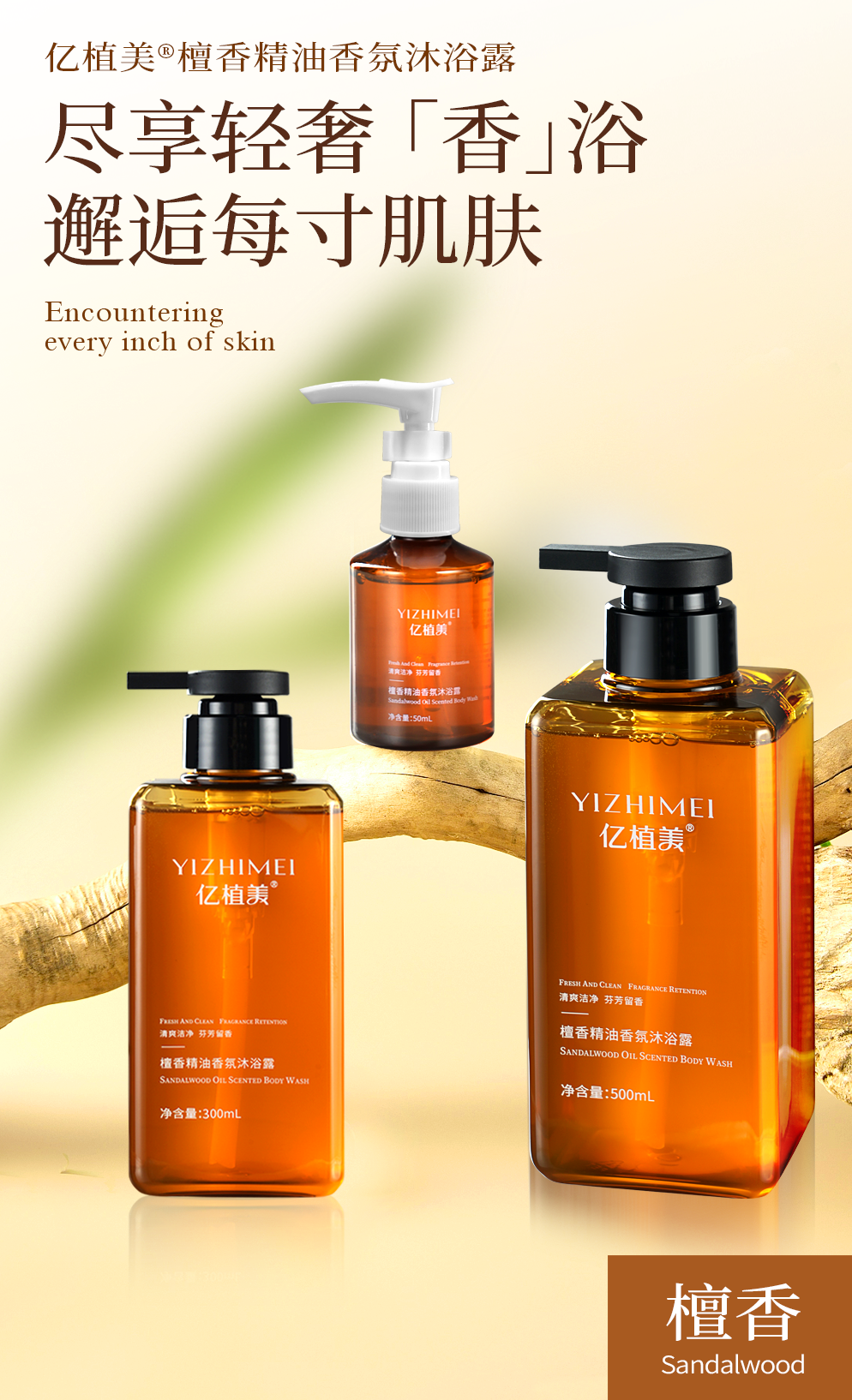 酒店家用檀香氨基酸沐浴乳 沐浴露清洁芳香洗澡男士淋浴檀香精油