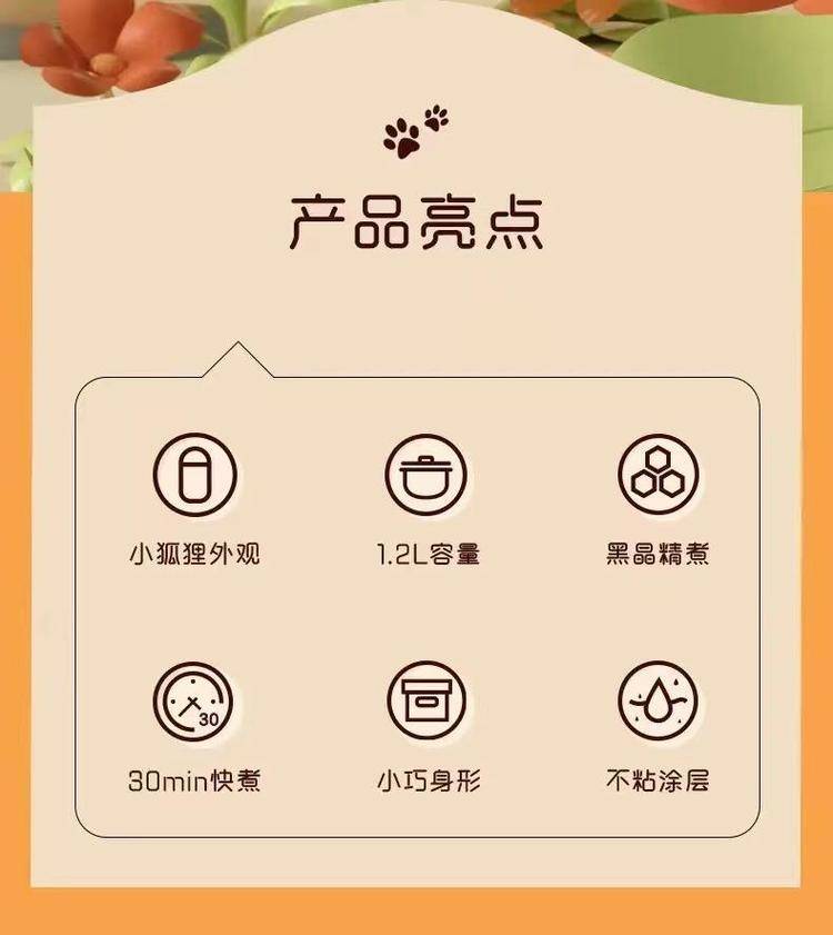 橙色狐狸饭煲1.2L,1.2L白色JE121