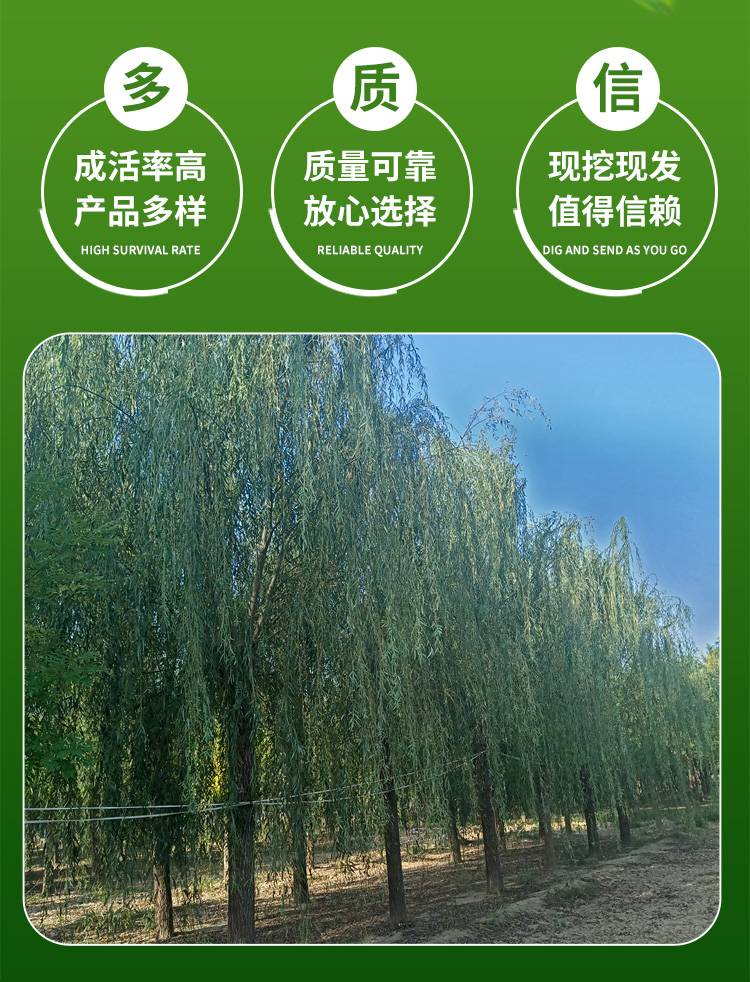 湿地公园11-12-13公分柳树 速生竹柳树苗 池塘河边垂柳