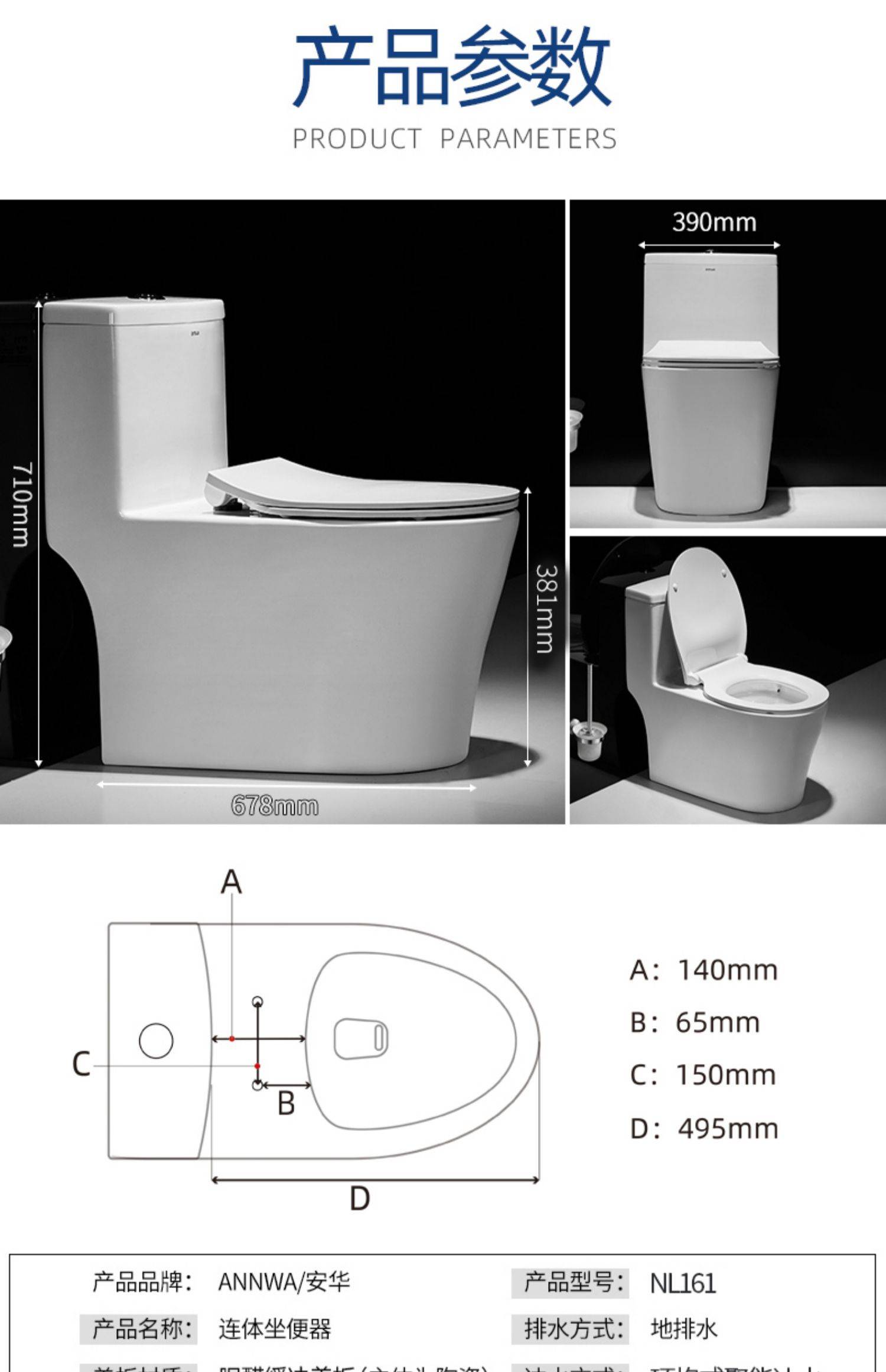 安华卫浴马桶小户型喷射虹吸式卫生间家用静音节水陶瓷防臭坐便器