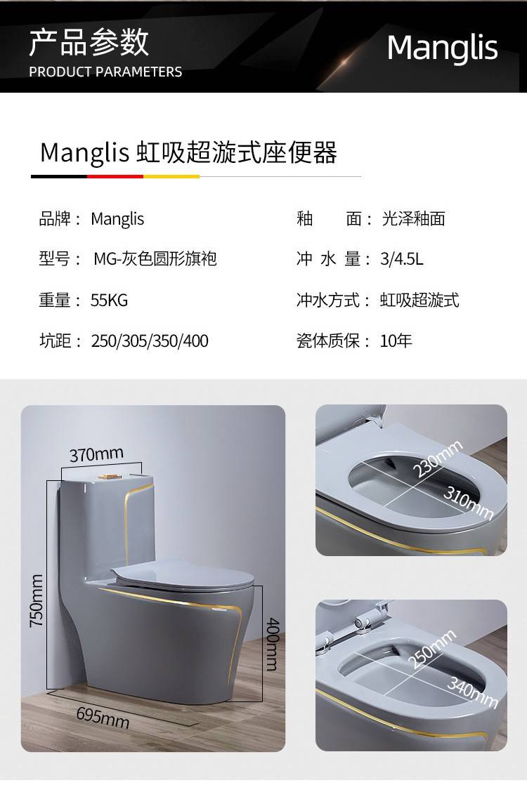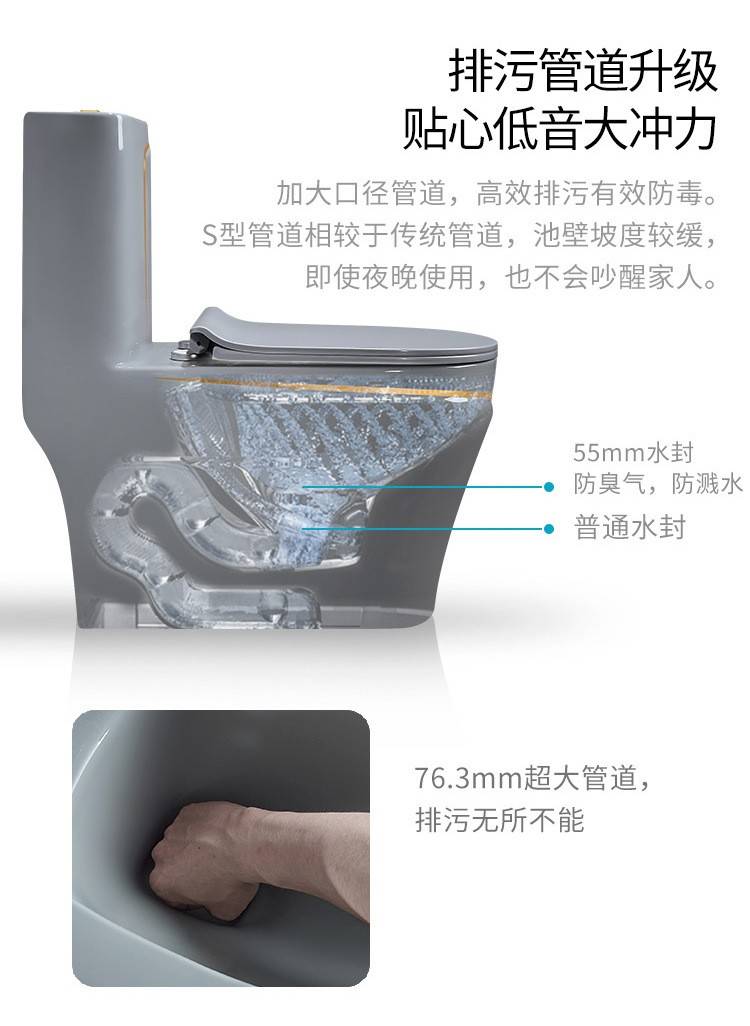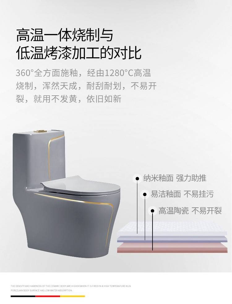 彩色马桶家用创意陶瓷虹吸超漩抽水防臭静音连体大管道时尚坐便器
