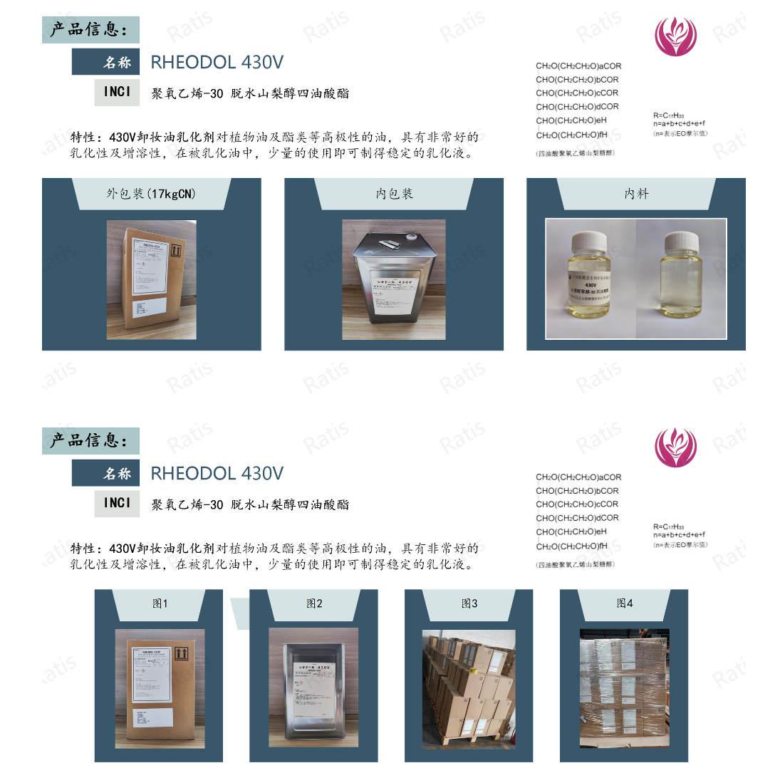 RHEODOL 430V日本花王,山梨醇聚醚-30四油酸酯, 卸妆沐浴 油乳化剂