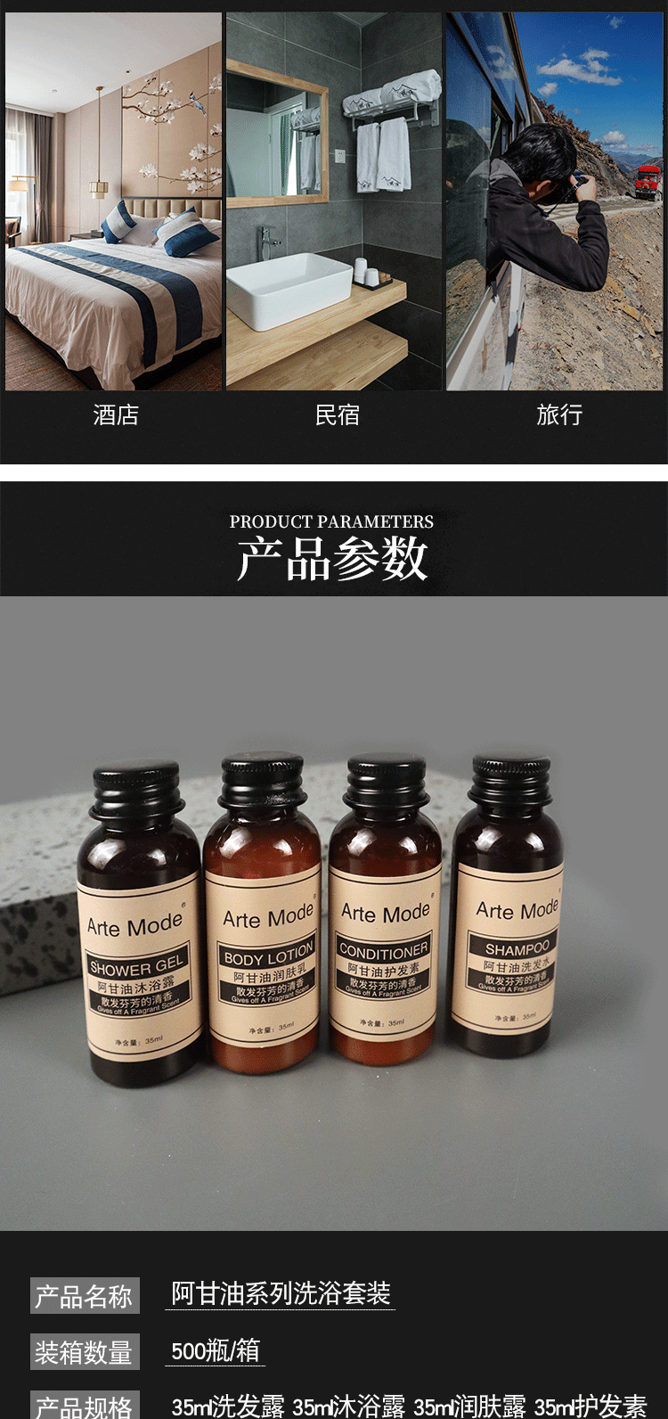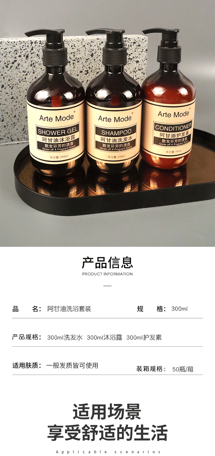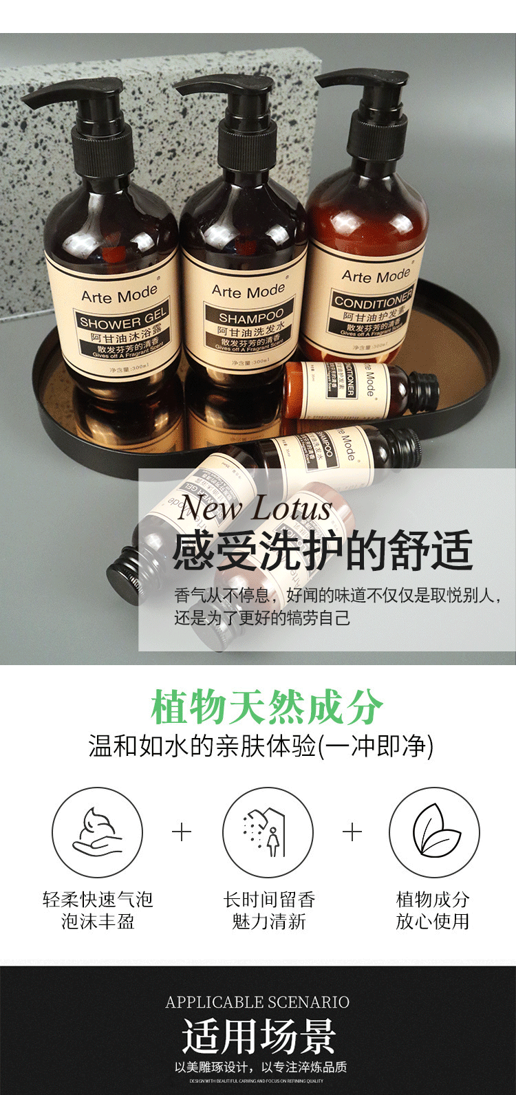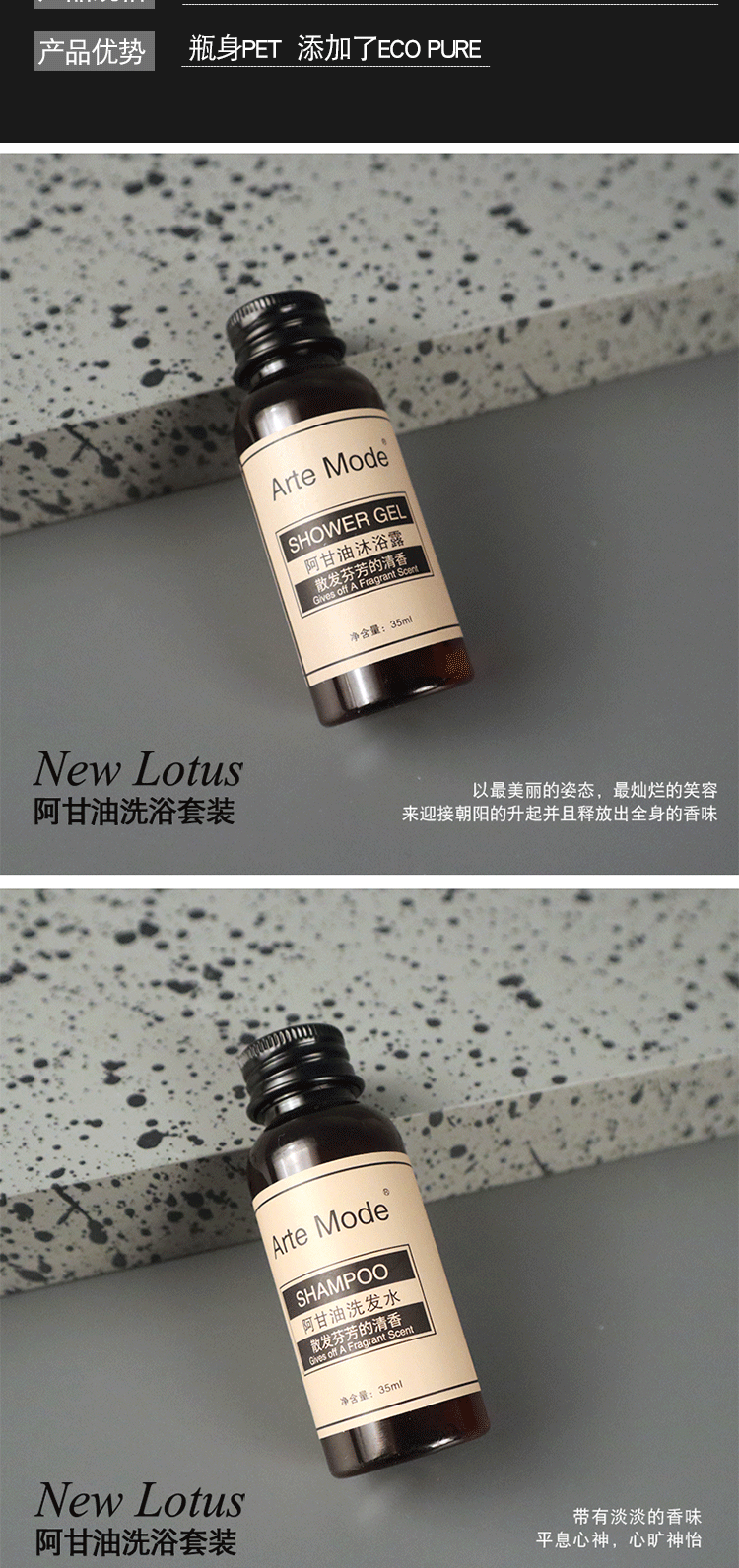 酒店批发阿甘油系列洗漱套装宾馆酒店民宿客房洗浴场洗发水沐浴露