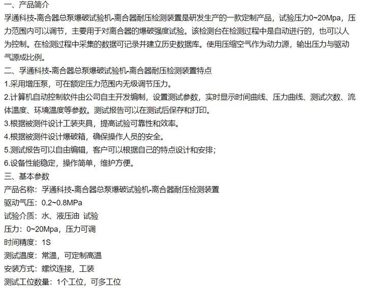 孚通科技-离合器总泵爆破试验机-耐压检测装置