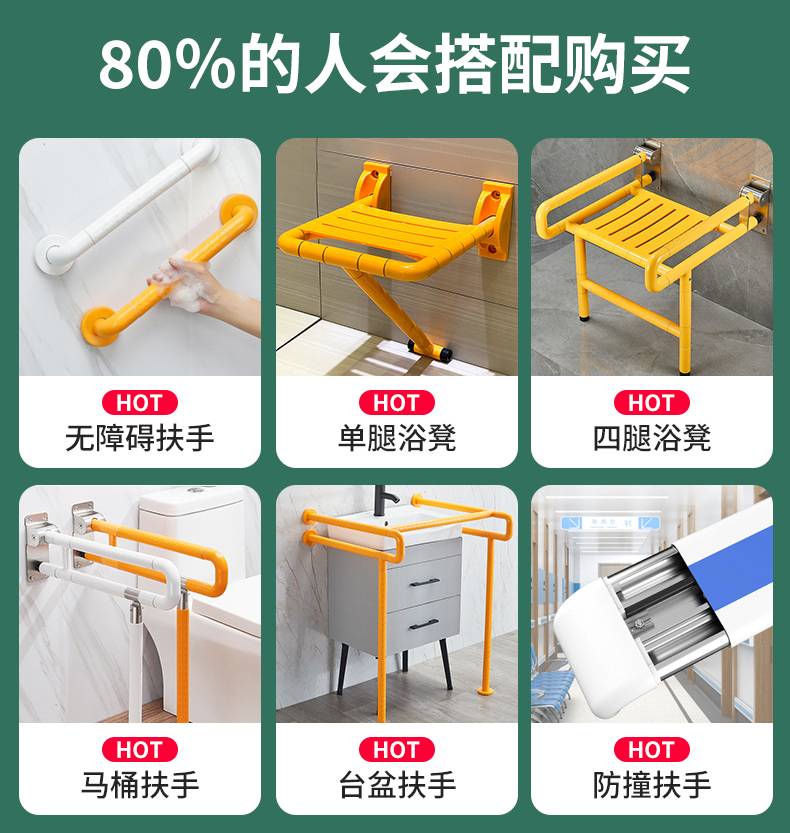 残疾人坐便器辅助扶手 小便池老人安全抓杆无障碍卫浴洗澡淋浴凳