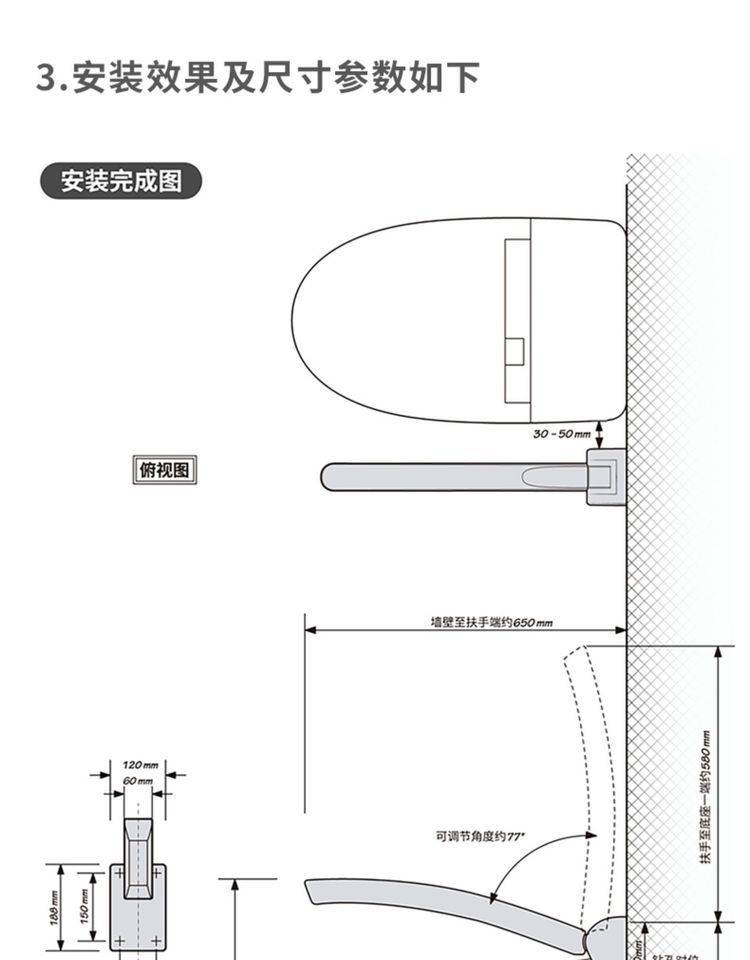 卫生间厕所马桶扶手浴室老人残疾人安全防滑无障碍坐便器折叠把手