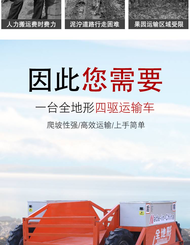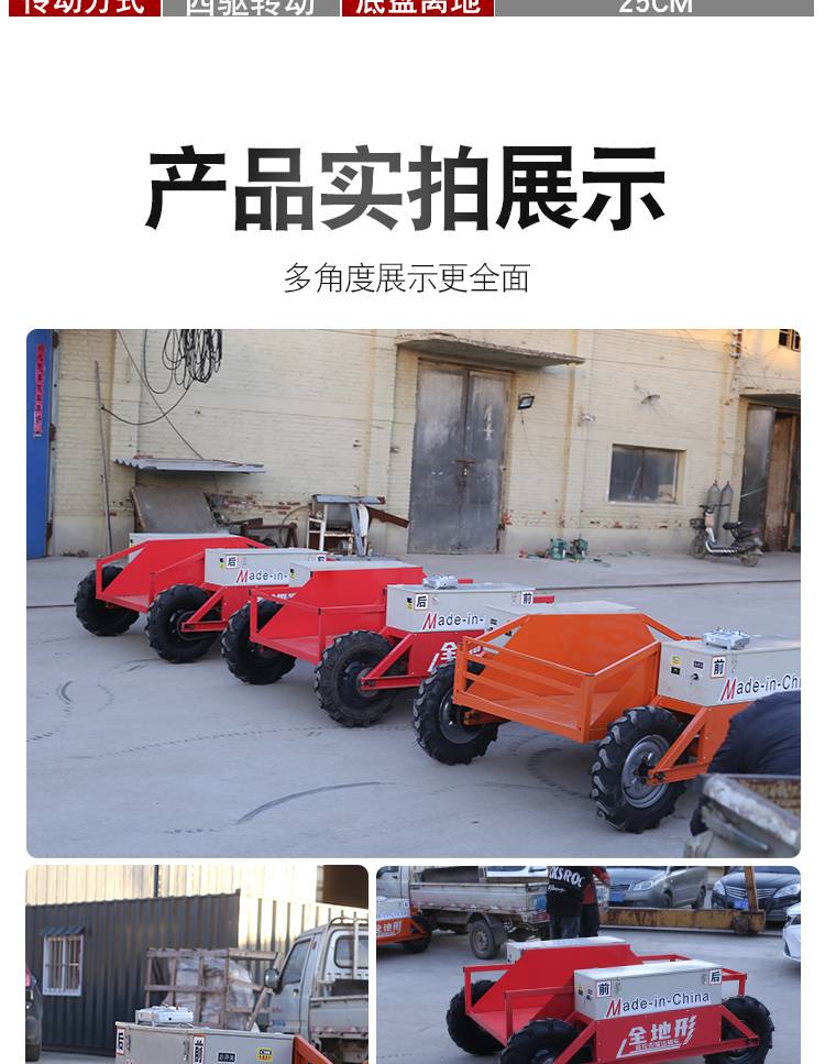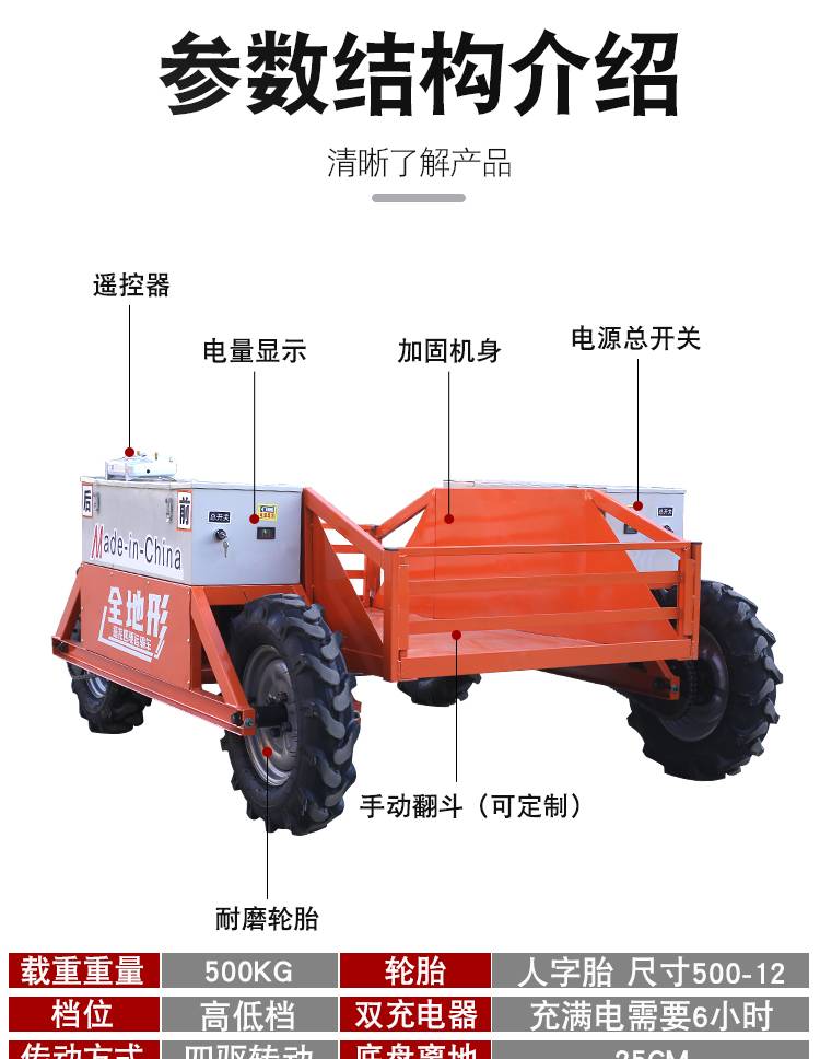 宏洁山地果园农田大棚仓库爬坡越野电动全地形四驱遥控运输车