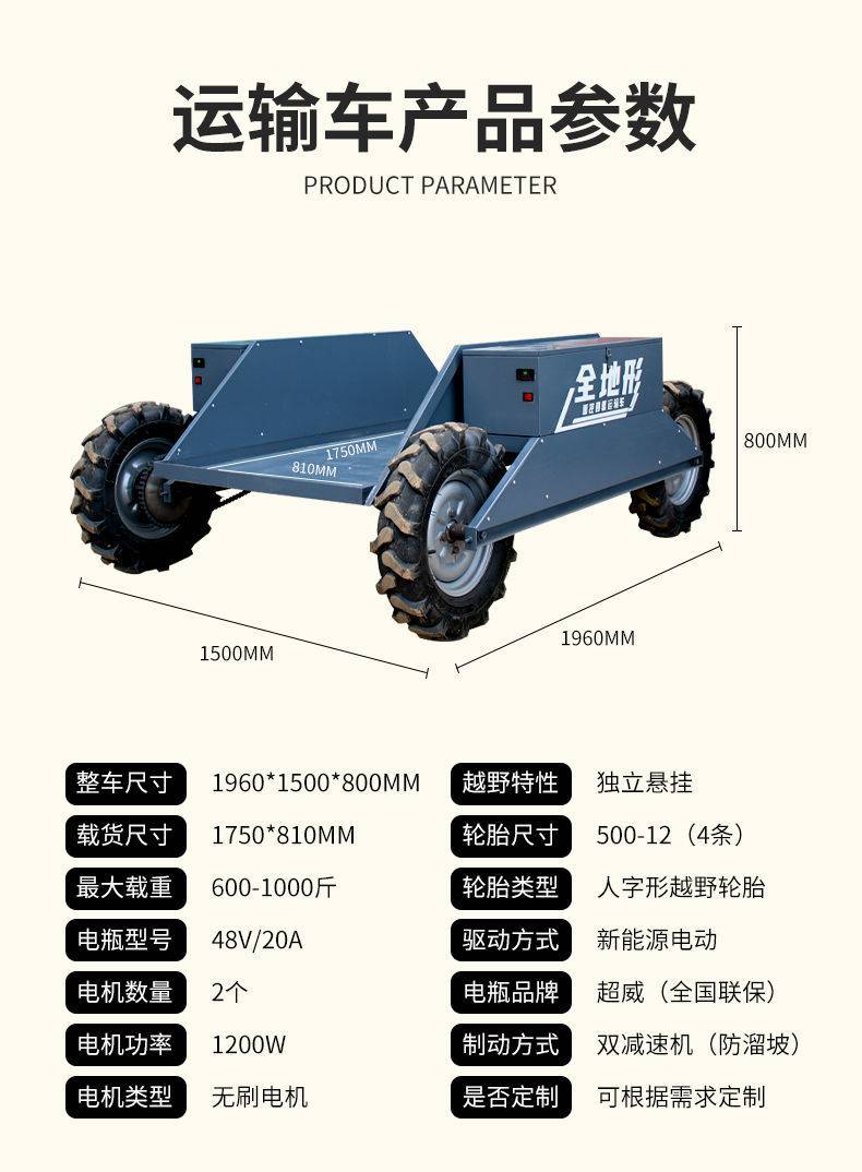 农用四驱轮式翻斗车电动四轮运输车越野遥控搬运车