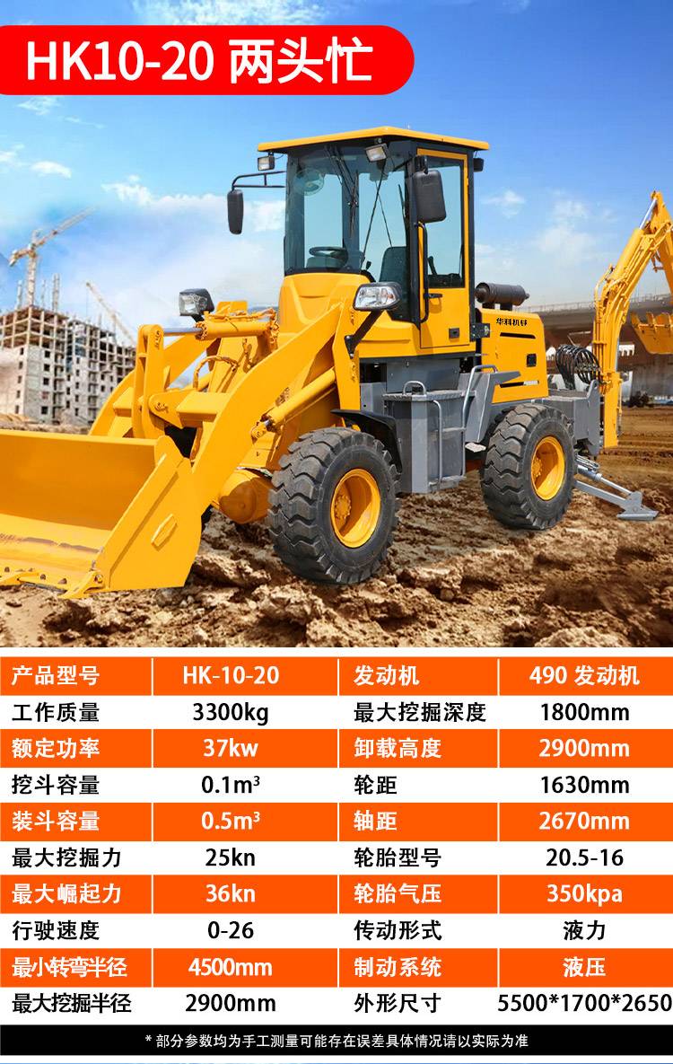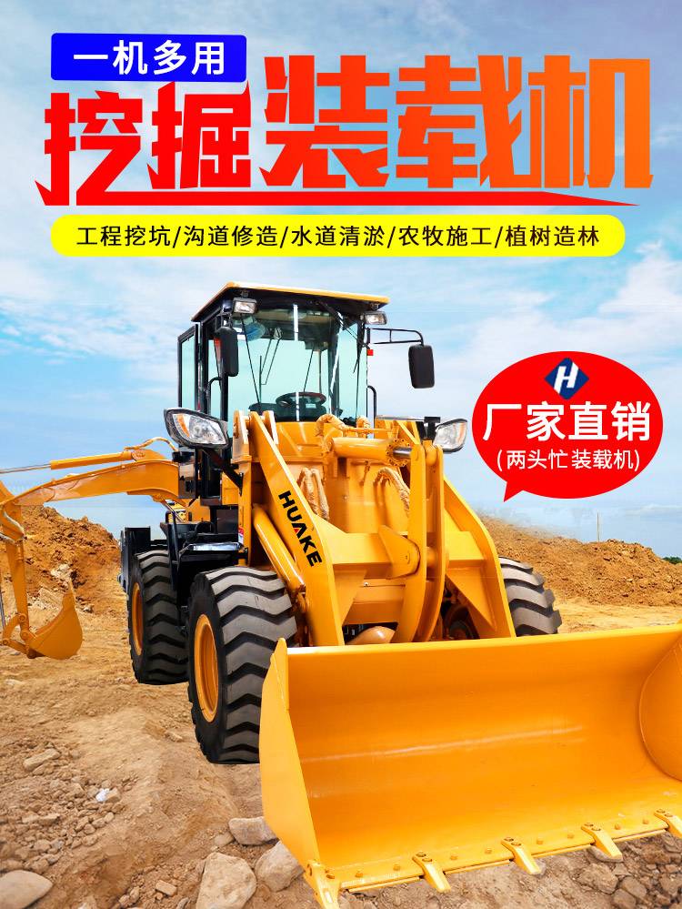 两头忙挖掘装载机多功能一体式2吨3吨农用柴油液压推土机前铲后挖