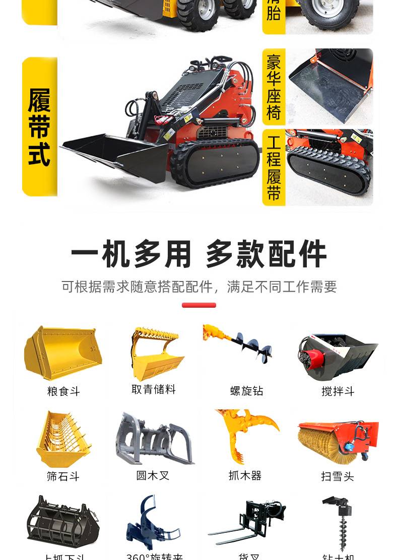 多功能履带滑移式装载机果园建筑工地用推土机轮式液压滑移小铲车