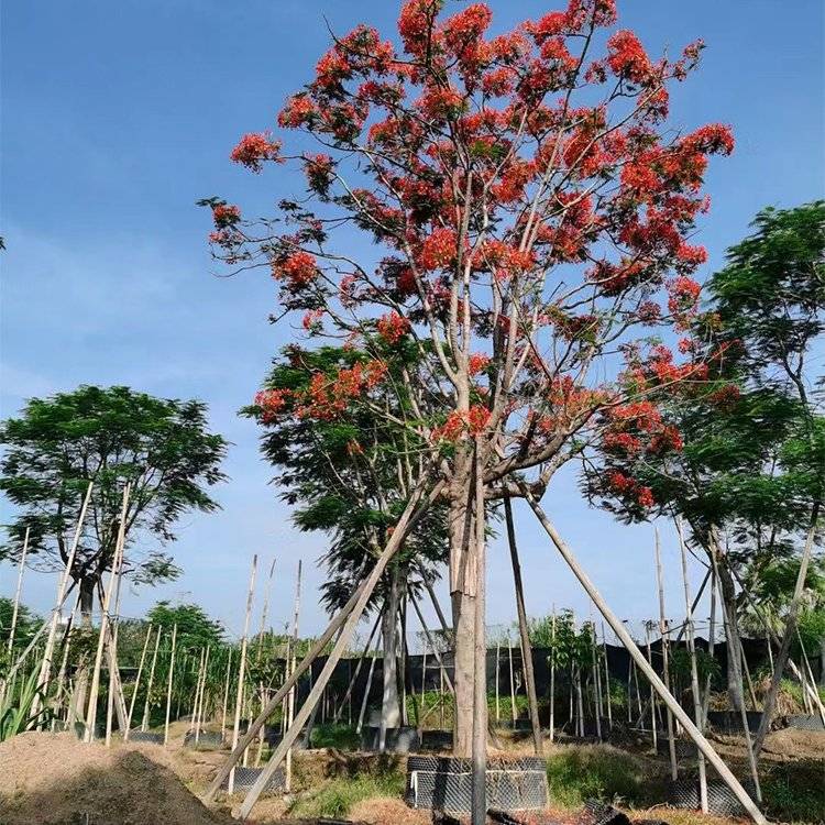 鼎盛基地批发 精品移植凤凰木 株高1-7米红花楹树 承接园林绿化工程