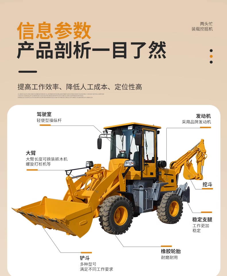 5吨两头忙装载机 柴油机工程挖掘铲车 农用果园养殖推土机